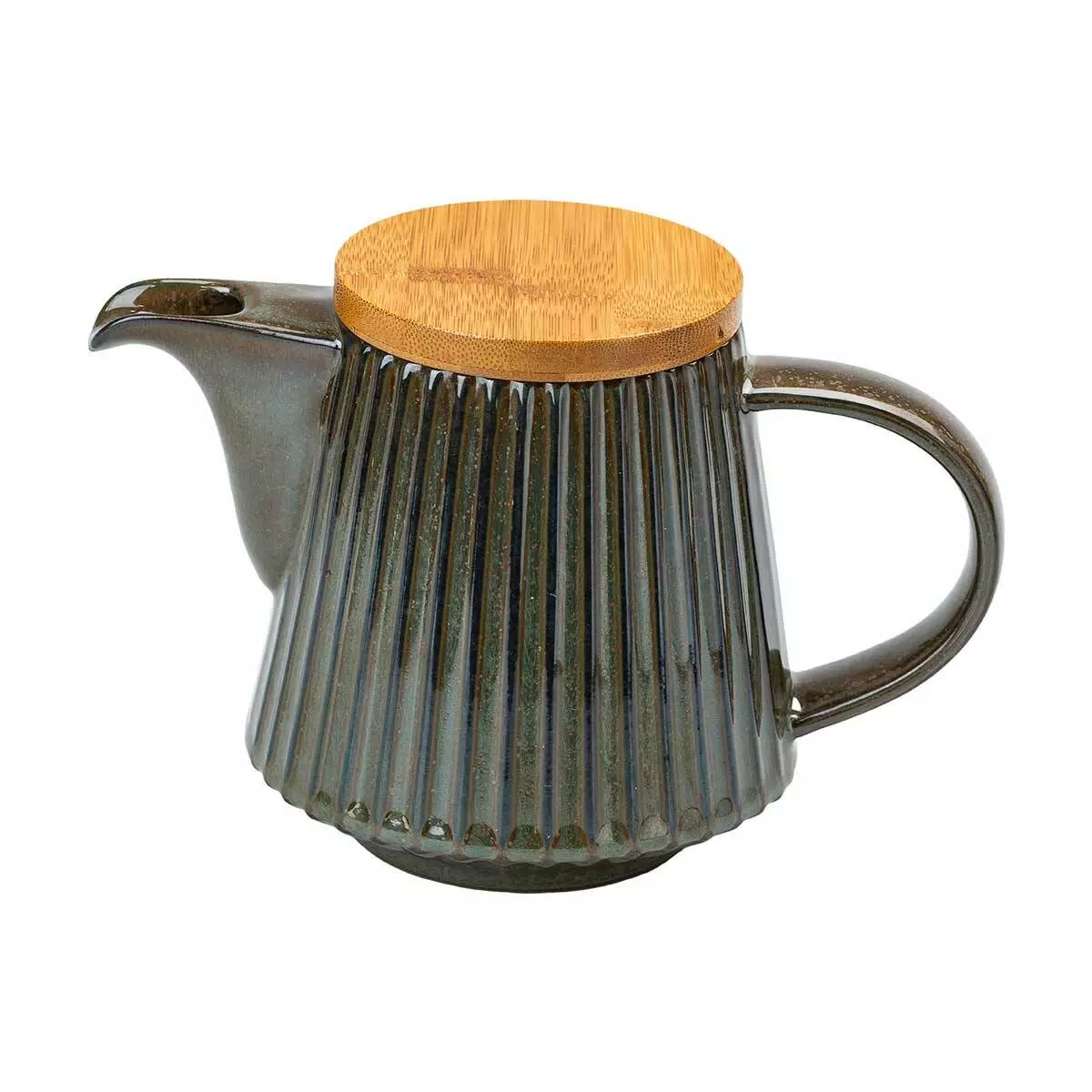 Чайник має лаконічну форму з плавними лініями, що підкреслює його природну красу. Зручна ручка чудово лягає в руку, роблячи процес заварювання чаю максимально комфортним. Бамбукова кришка щільно прилягає, зберігаючи тепло напою протягом тривалого часу.