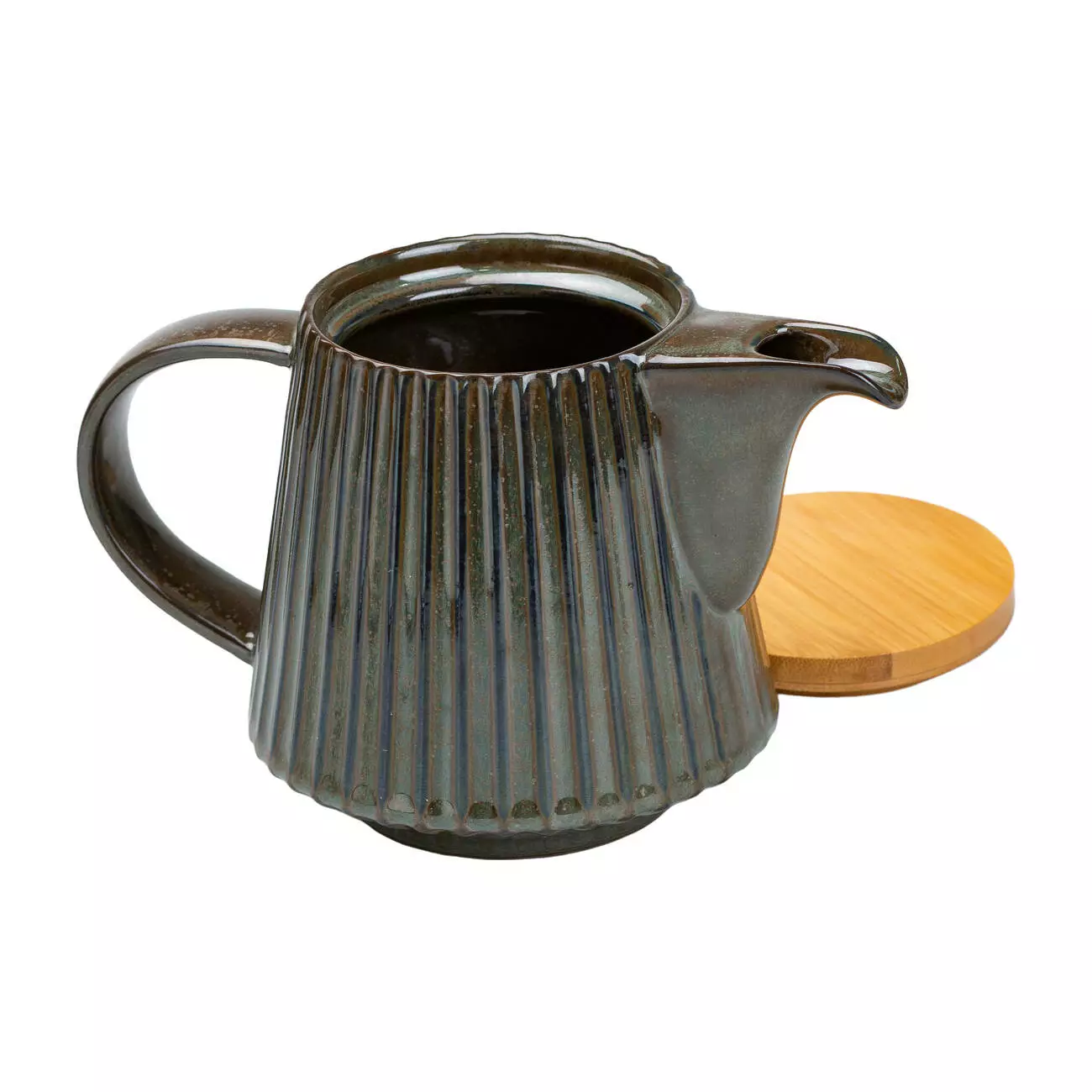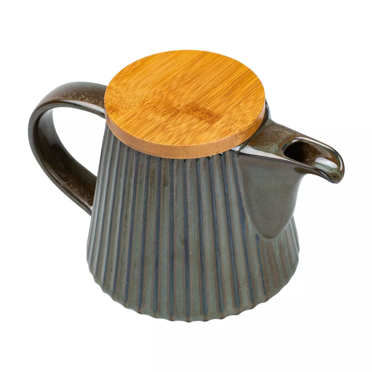 Чайник заварювальний порцеляновий з бамбуковою кришкою 850 мл, зелений з коричневим