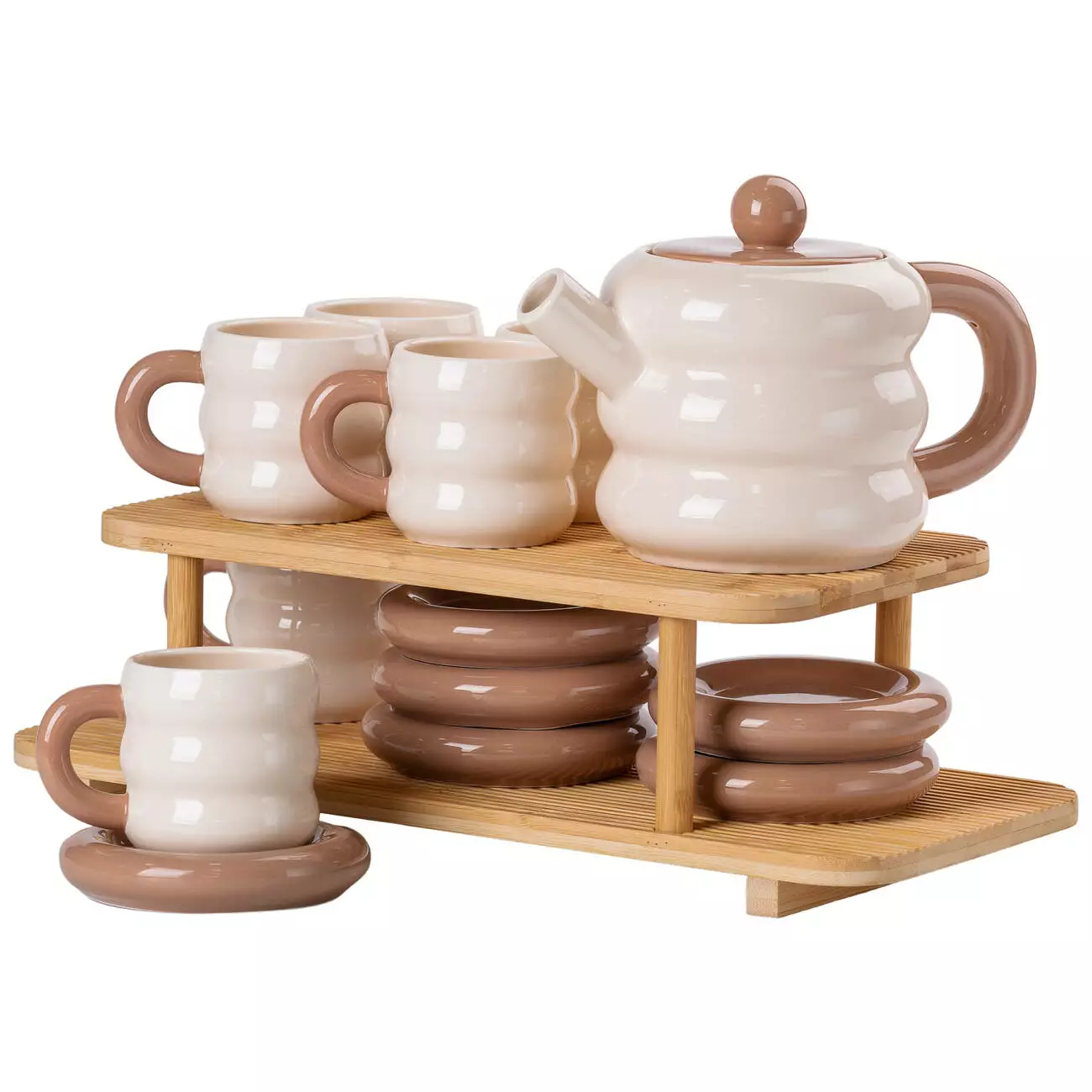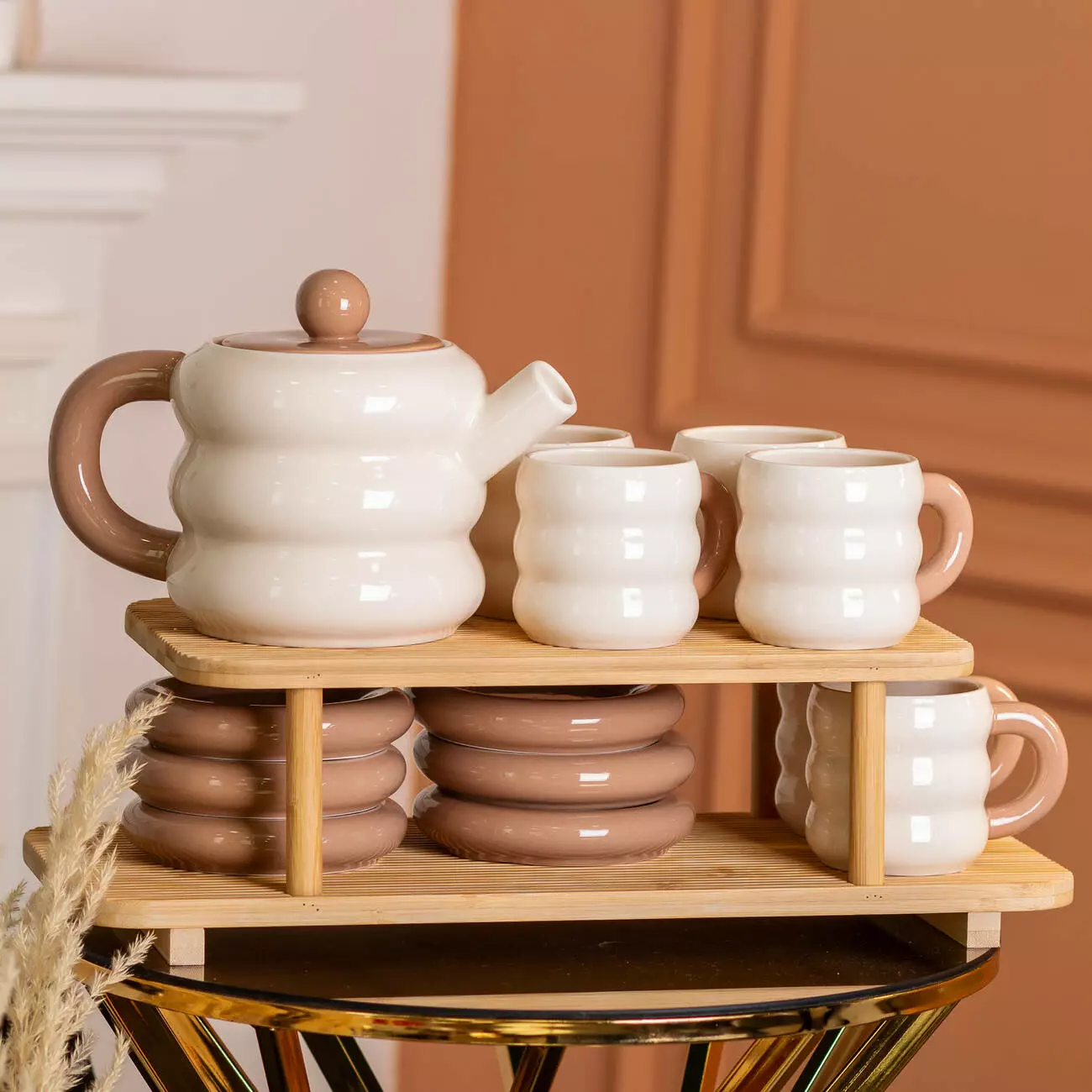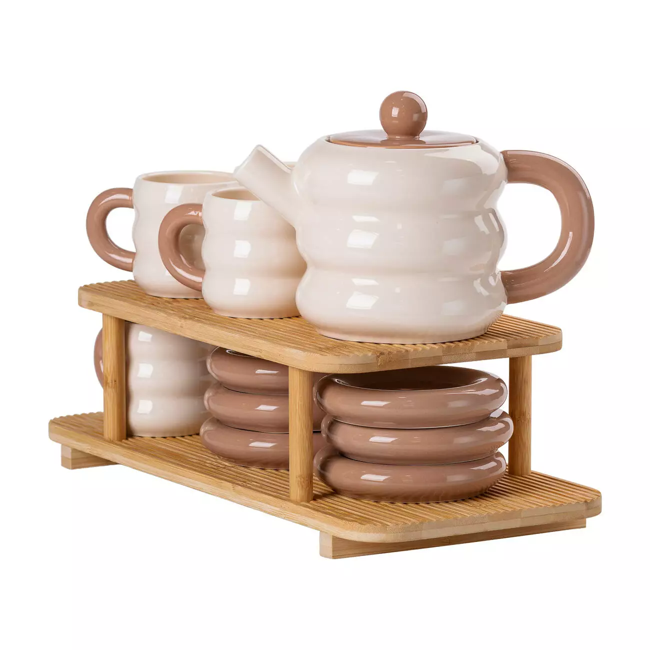 Комплектація: Чайник, 6 чашок із блюдцями, бамбукова дворівнева