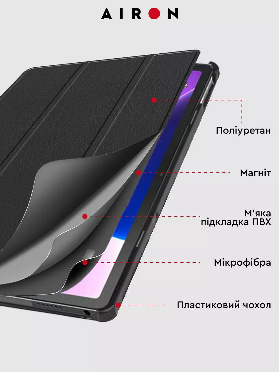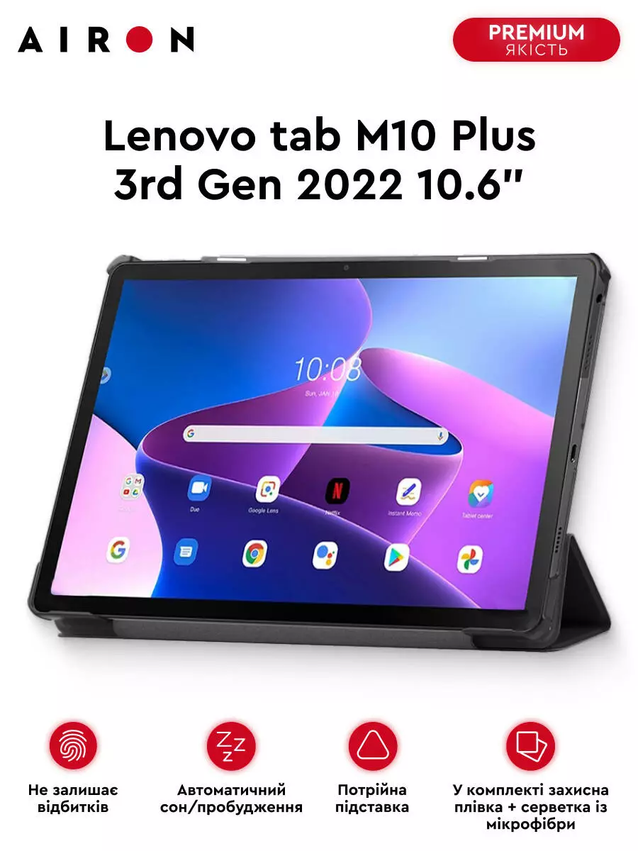 Чехол AIRON Premium для Lenovo tab M10 Plus 3rd Gen 2022 10.6" с защитной пленкой и салфеткой Black