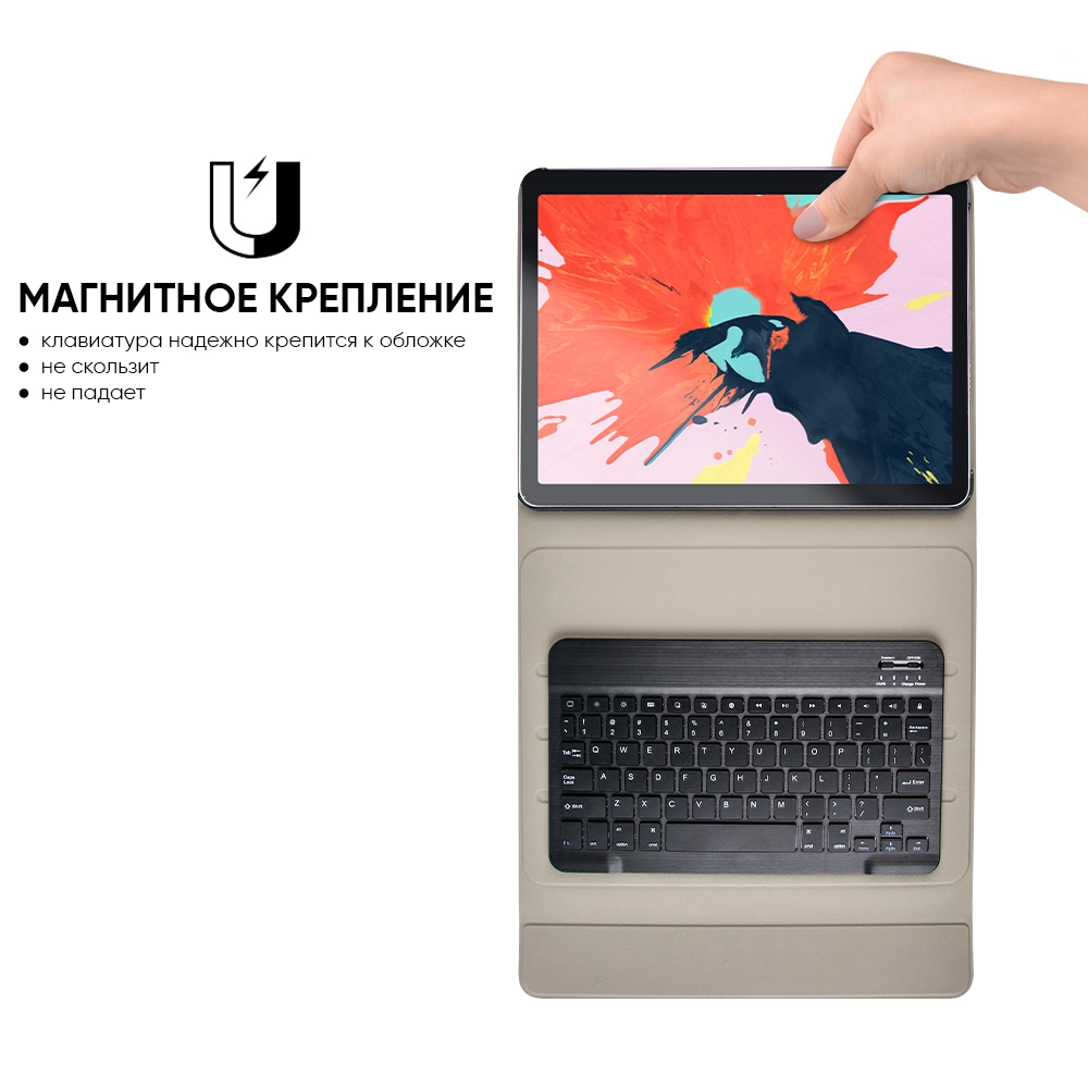 чехол-обложка на магнитных креплениях эргономично присоединяется к