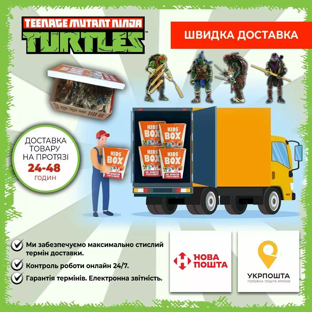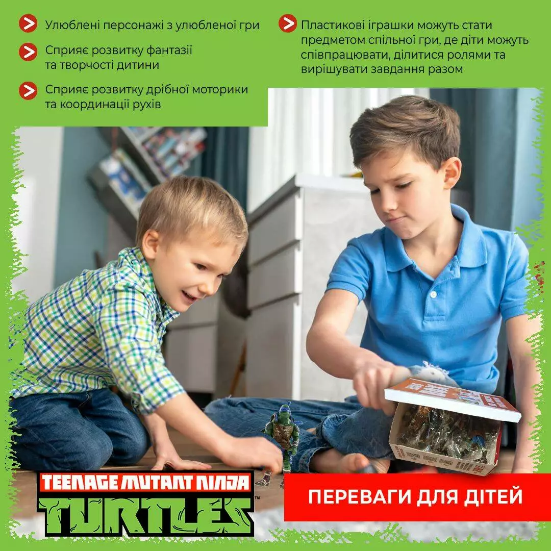 - Фигурки выполнены по мотиву популярного мультфильма "Черепашки Ниндзя".