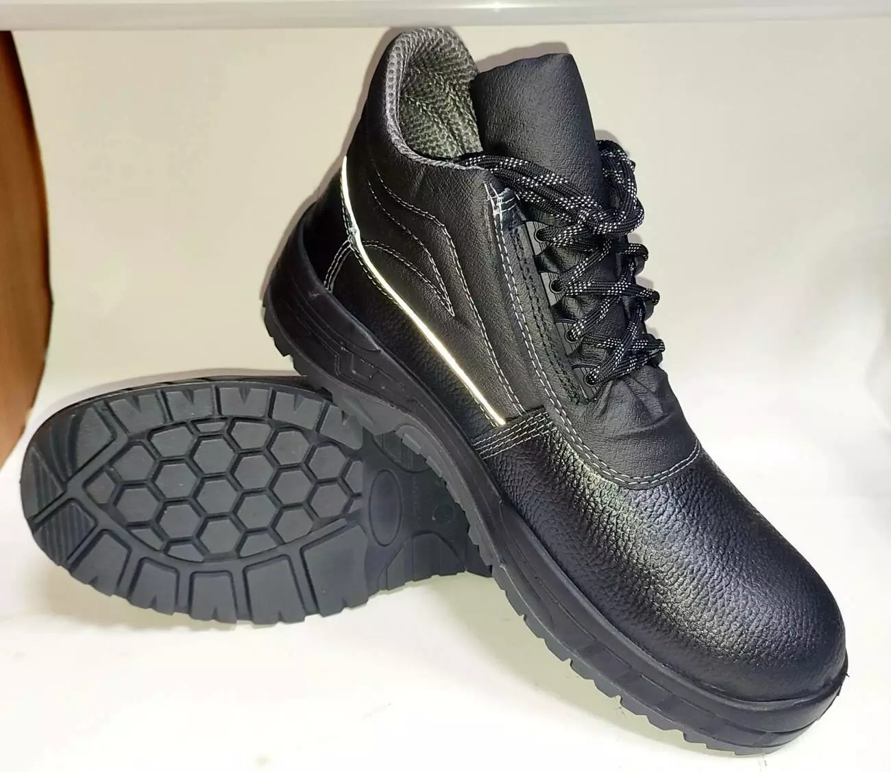 Черевики чоловічі спеціальні для захисту від нафти, нафтопродуктів, кислот концентрації 20%, з верхом із комбінованих матеріалів, литтєвого методу кріплення підошов із двошарового, маслобензостійкого поліуретану, підвищеною зносостійкістю, профіль ходової поверхні- самоочисний.