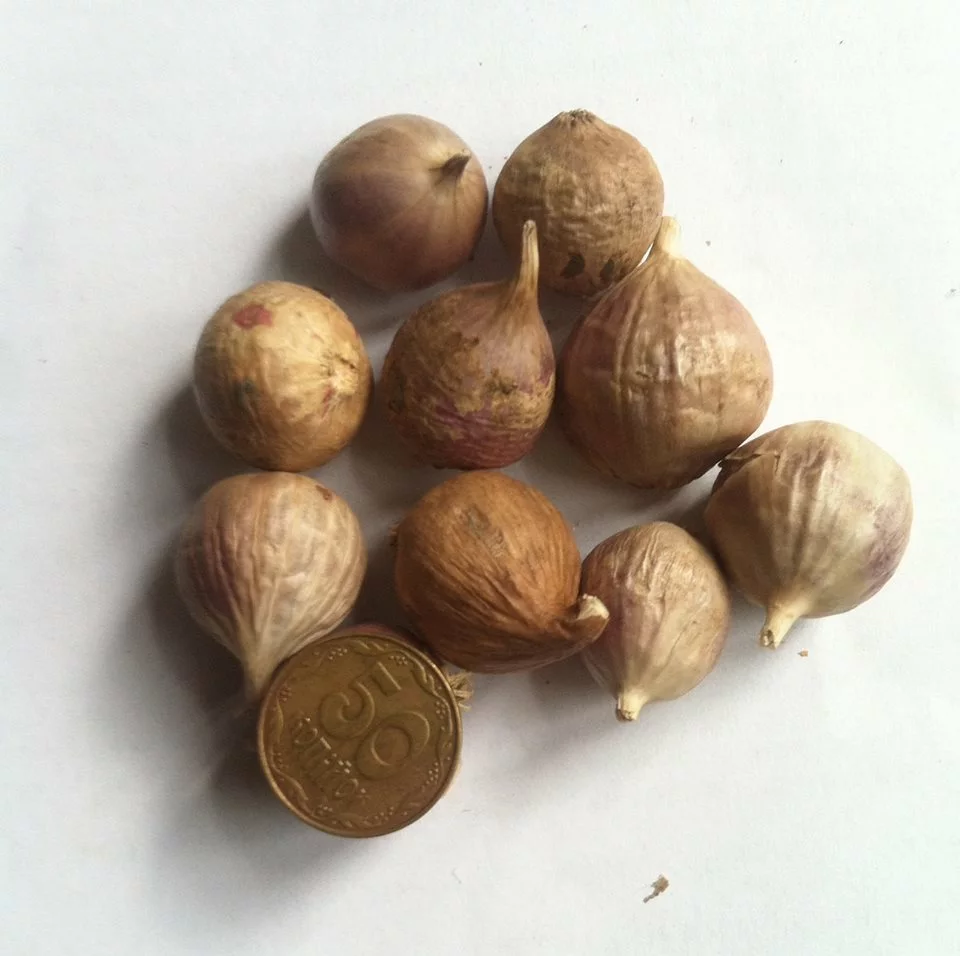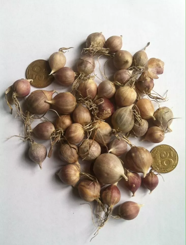 Насіння часнику з повітряної коробочки в червні озимий часник утворює квіткові стрілки, на кінці яких замість суцвіття розвиваються повітряні цибулинки (бульбочки). Відібрані, відсортовані і просушені восени вони висаджуються в поле. На наступний рік із бульбочок утворюються цибулини-однозубки вагою 0,5-5 г, які називають сівбою або однозубкою.