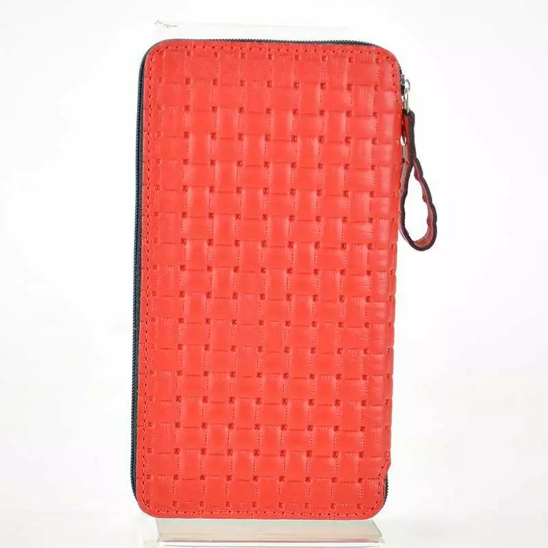 Чохол-сумочка шиється зі шкіри із тисненням ефекту плетіння.