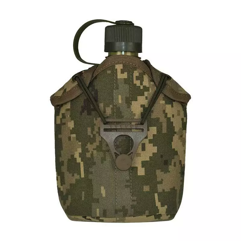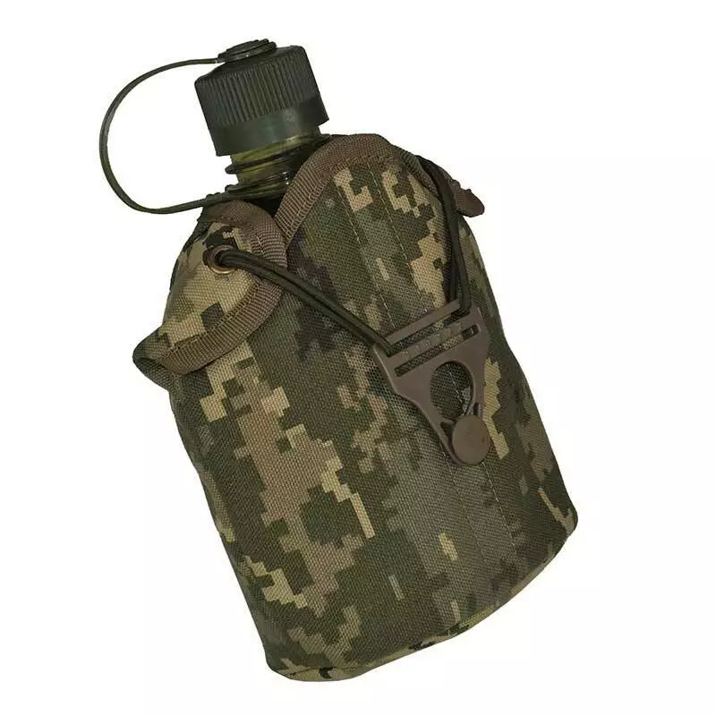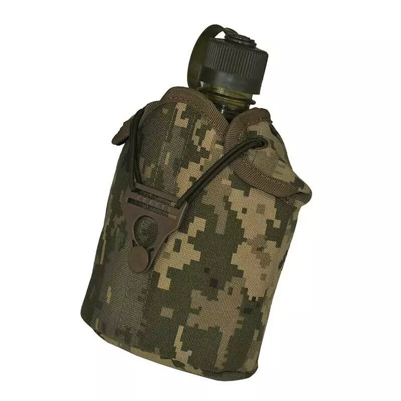 Чохол для фляги FL-01-01 пошитий з тканини кордура в кольорі піксель ММ-14 із щільністю плетіння 1000D, тканина має поліуретанове просочення, що надає виробу ефекту водовідштовхування.