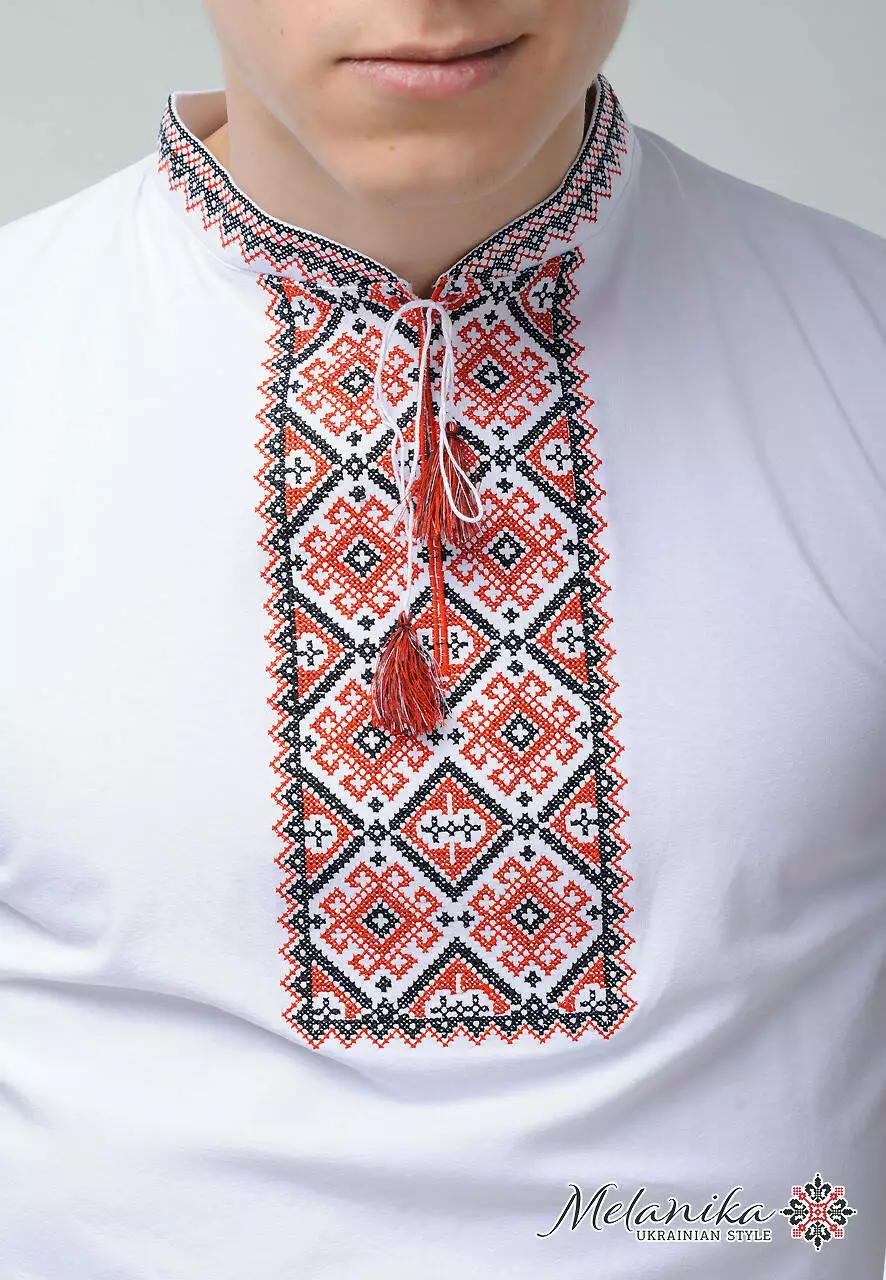 Якісні світлини цієї моделі допоможуть якомога детальніше оглянути кожну деталь “Отаманської” вишитої футболки. Вишивка виконана на тканині білого кольору червоними та чорними нитками.