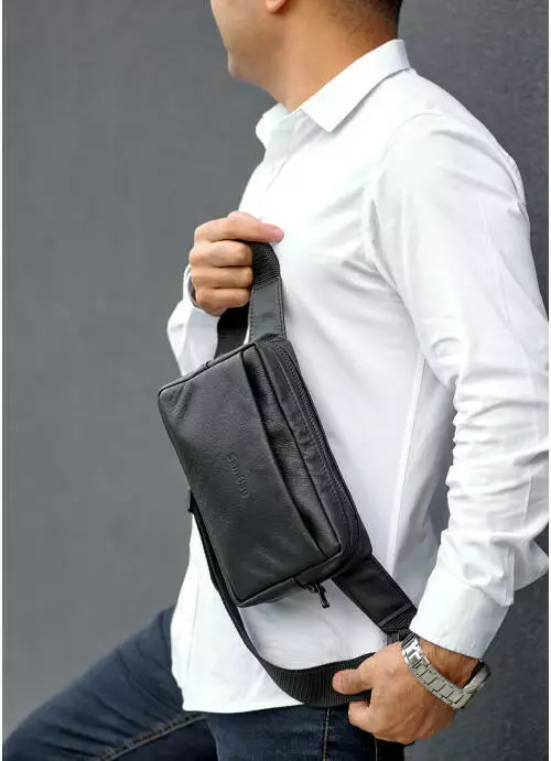 Вместительная и практичная сумка бананка с экокожи -