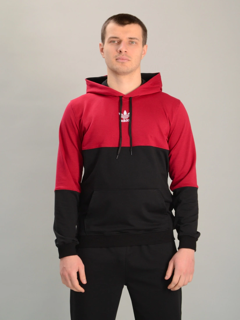 Чоловіча спортивна двоколірна кофта-кенгуру adidas бордово-чорна, Ростовка (4 шт)