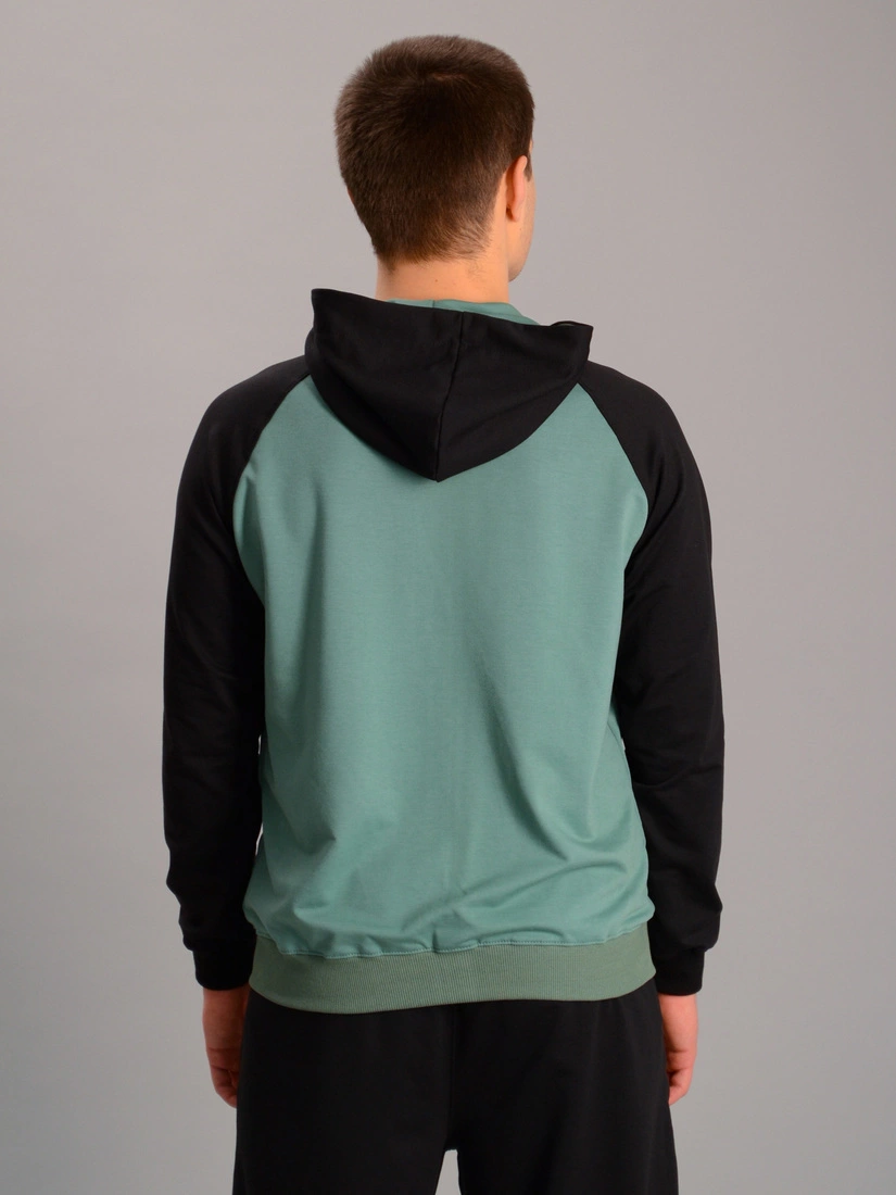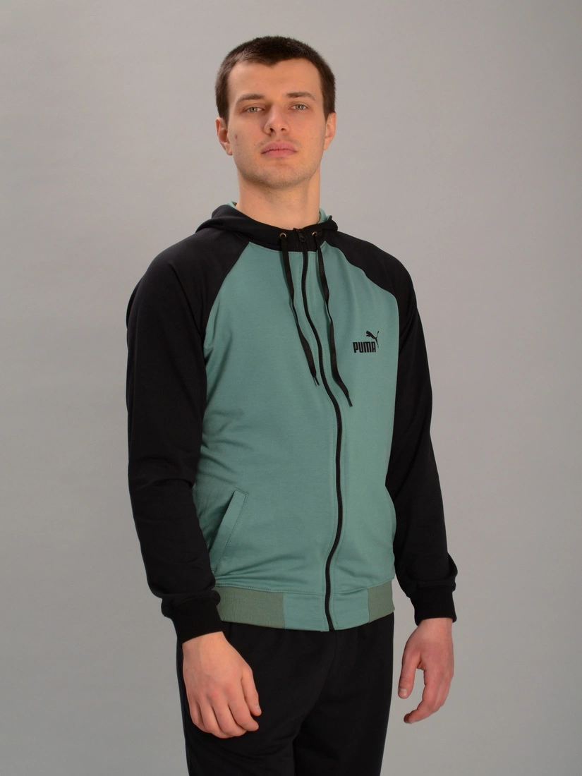 Чоловіча спортивна двоколірна кофта на замку з капюшоном puma м'ятно-чорна, Ростовка (4 шт)