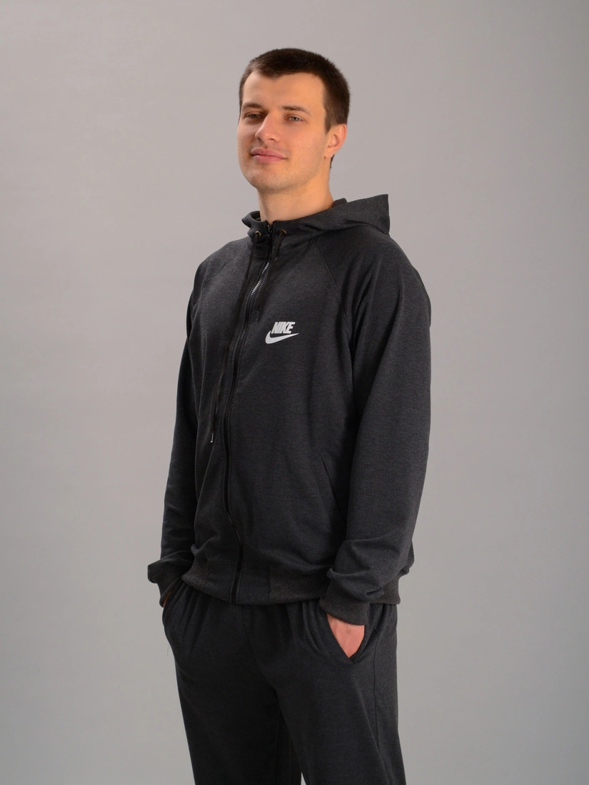 Чоловіча спортивна кофта на замку з капюшоном nike антрацитова (батал), Ростовка (3 шт)