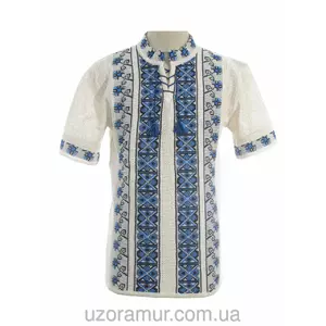 Чоловіча вишиванка на літо з синім візерунком