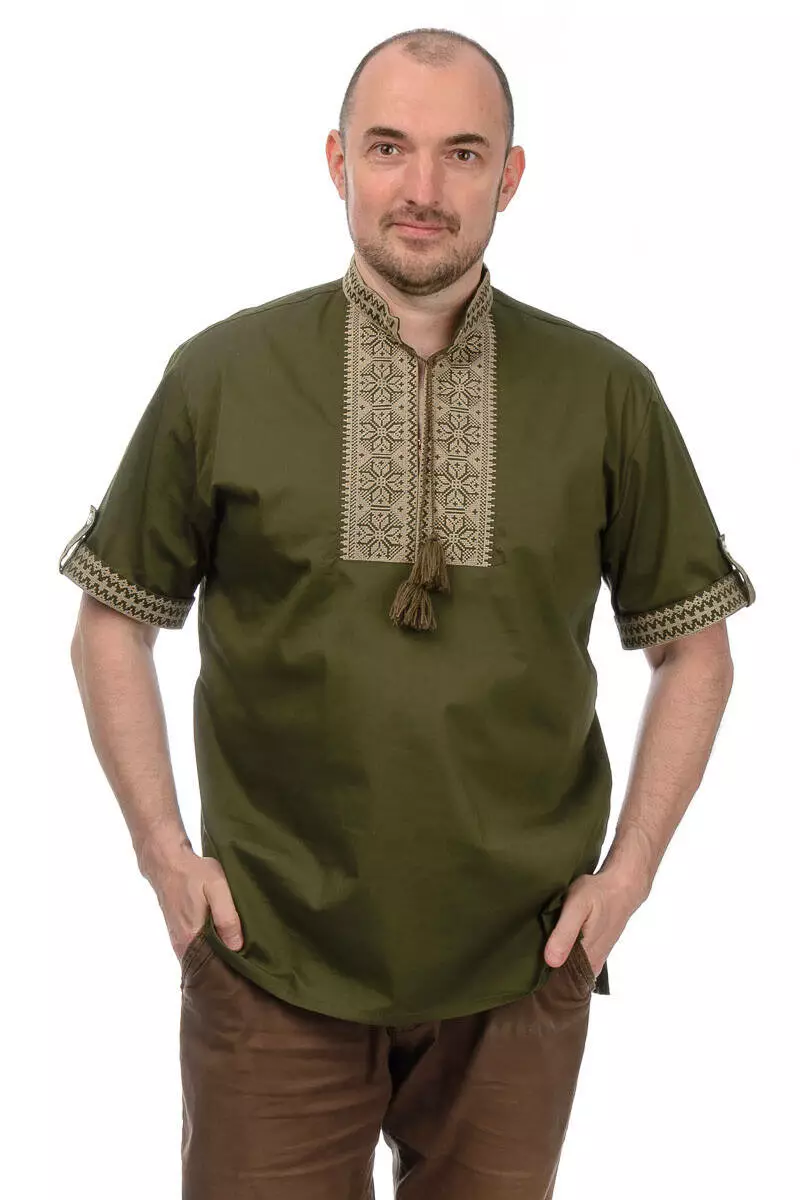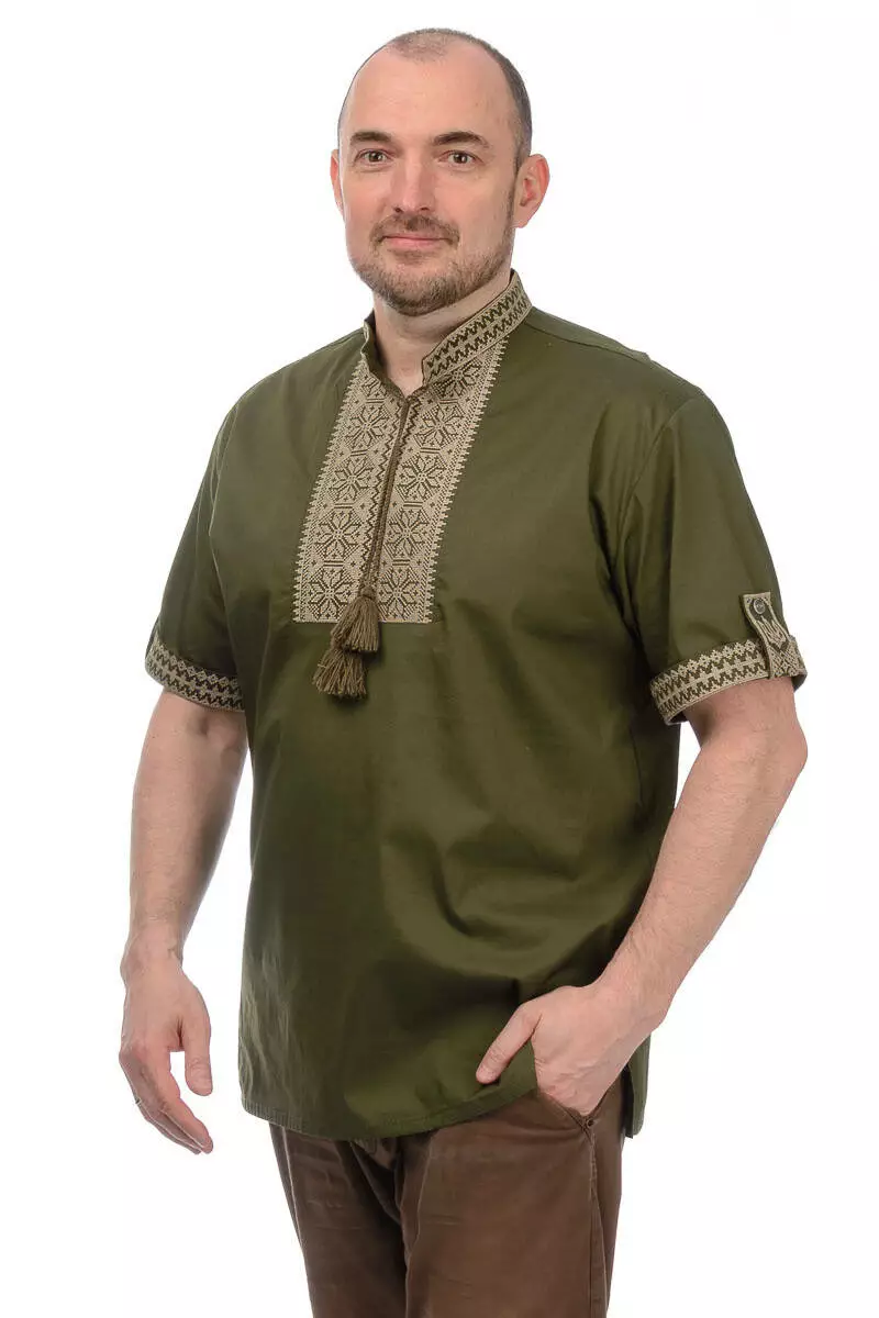 Чоловіча вишиванка з коротким рукавом (колір хакі)
