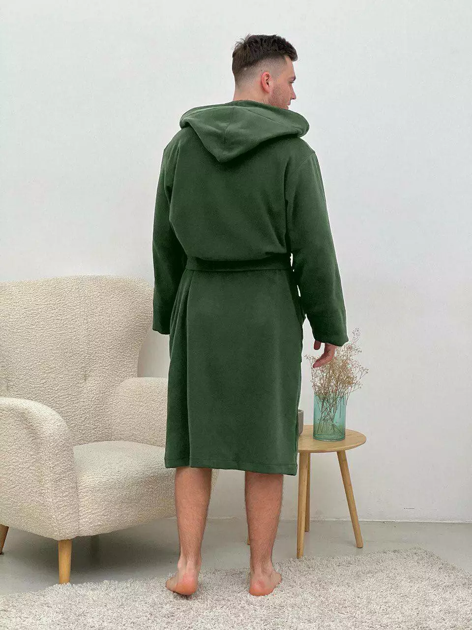 Чоловічий флісовий халат COSY з капюшоном хакі(зелений)
