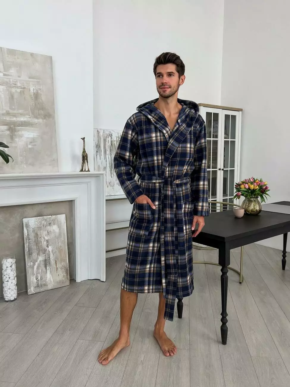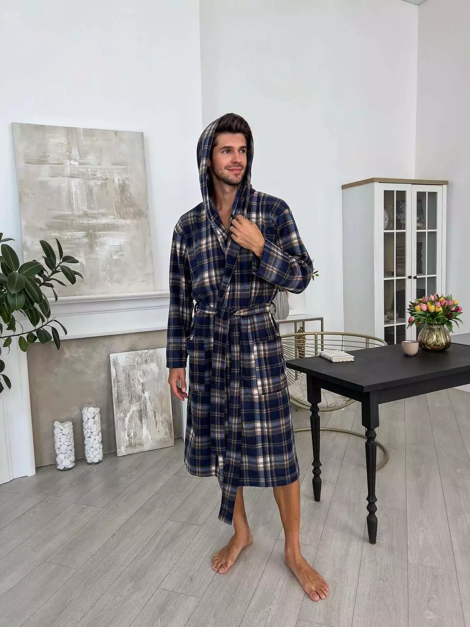 Дуже теплий чоловічий халат з капюшоном із топової тканини