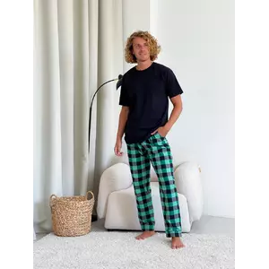 Штани з кишенями. Пояс на резинці з регульованою куліскою. Чоловічий піжамний комплект - це не тільки одяг для сну, але і зручний практичний одяг для дому. Піжамні штани: Колір: клітина зелен./чорн Тканина фланель: Бавовна 70%, поліестер 30%, Туреччина Щільність: 150 г/м2 Ефект: легкий начіс, двосторонній Футболка - 100% бавовна Колір чорний