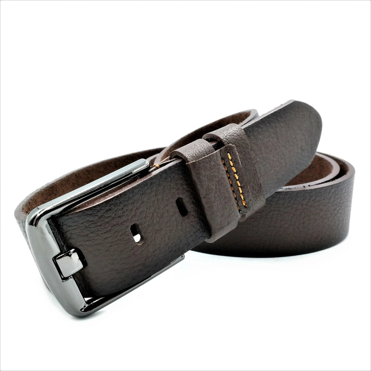 Ремінь чоловічий шкіряний класичний, металева пряжка, ширина 4 см,