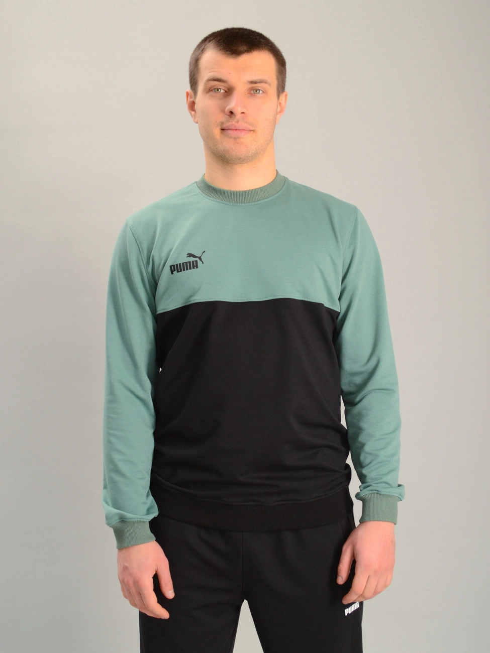 Чоловічий спортивний двоколірний світшот puma м'ятно-чорний, Ростовка (4 шт)