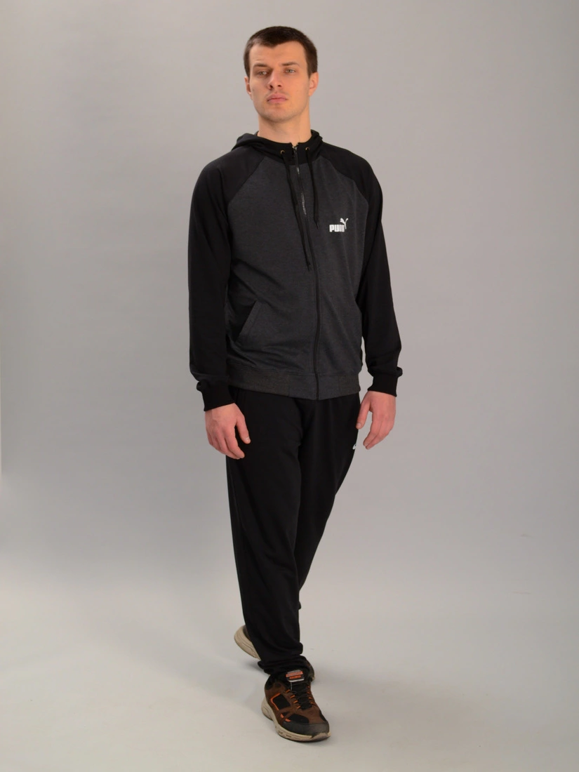 Чоловічий спортивний костюм із кофтою на замку з капюшоном puma антрацитово-чорний, Ростовка (4 шт)