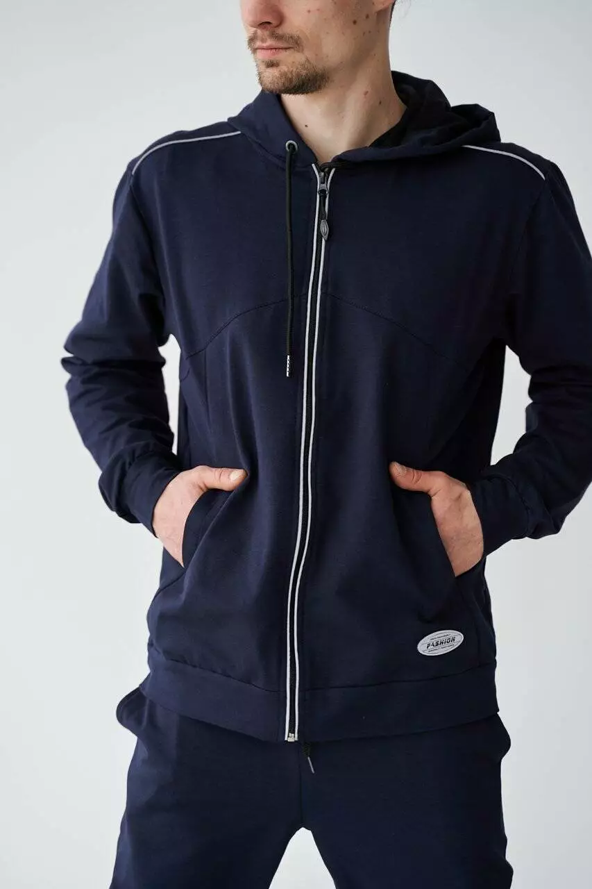 чоловіка. Кофта на блискавці з капюшоном та зручні штани створюють
