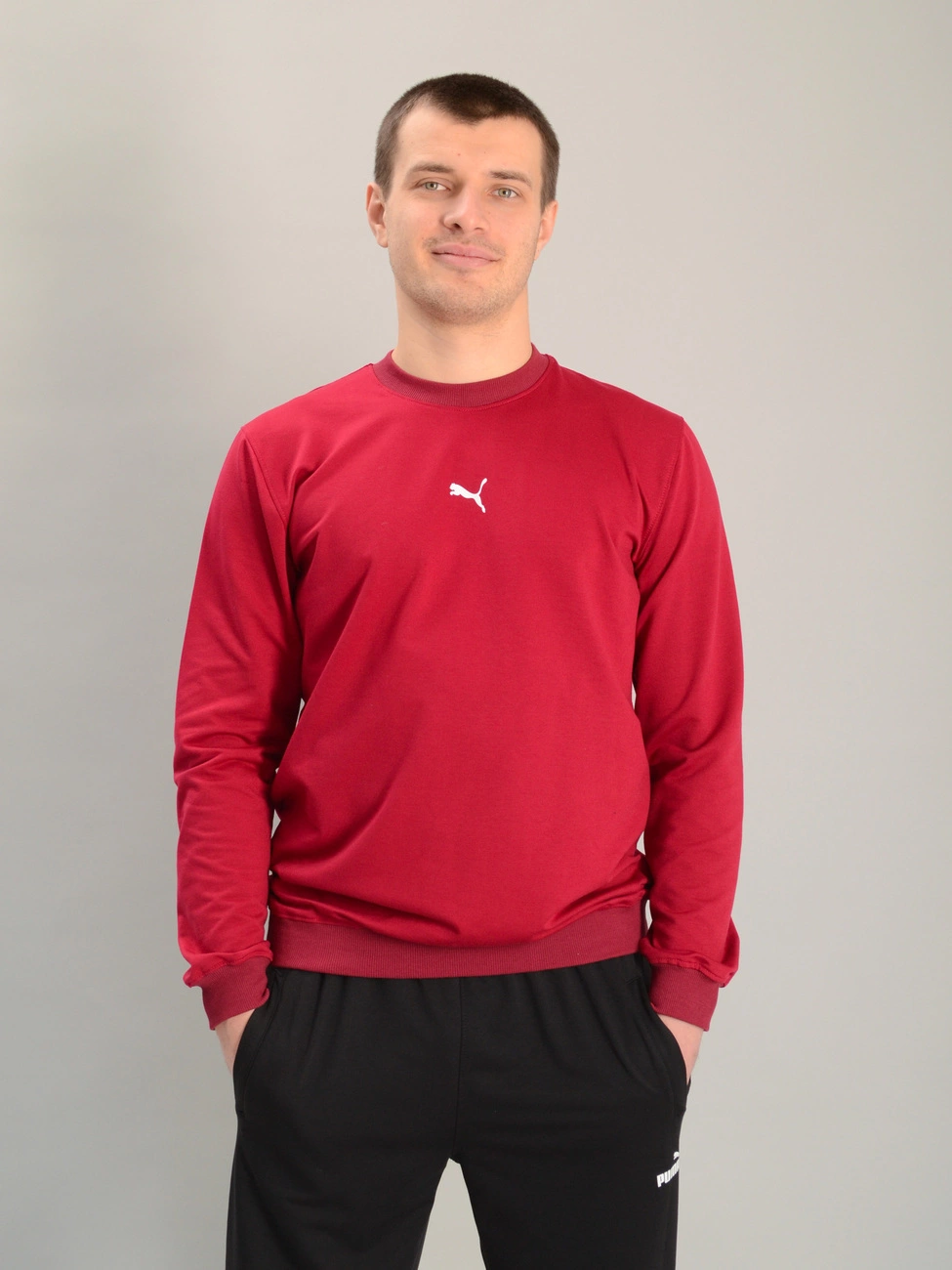 Чоловічий спортивний однотонний світшот puma бордовий, Ростовка (4 шт)