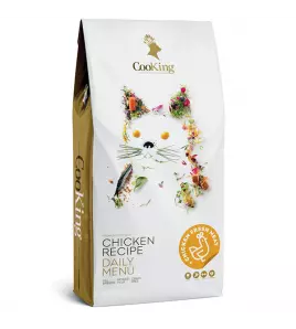 Сухий корм CooKing беззернова формула з свіжим м'ясом для дорослих котів. Повнораціонний збалансований беззерновий сухий корм з свіжим м’ясом курки, лососем та бобовими. Раціон створений для справжніх гурманів та поціновувачів свіжого, здорового, смачного та поживного меню. Забезпечить організм тварини всіма поживними речовинами. Склад: Свіже куряче м'ясо (мінімум 20%), картопля, лосось, бобові, жир домашньої птиці, пивні дріжджі, тунець, гідролізат курячої печінки, риб'ячий жир, овочі (цикорій, морква, зелена квасоля, кольрабі), мінеральні речовини, лігноцелюлоза, яблучна клітковина, хондропротекторний комплекс (глюкозамін гідрохлорид, хондроїтин сульфат, МСМ, екстракт зелених мідій (Perna canaliculus)), таурин, манно-олігосахариди, фрукто-олігосахариди, рослини (календула, шавлія, пажитник, кріп, чебрець, шипшина), екстракт Юкки Шидігера, пребіотики, екстракти (червоних плодів, цитрусових, насіння розторопші, насіння зеленого чаю, м'яти, розмарину), натуральні антиоксиданти, живі пробіотики (E. faecium). Аналітичний склад: Сирий білок: 35 % Сирий жир: 17 % Сира клітковина: 3 % Зола: 8 % Кальцій: 1,3 % Фосфор: 0,9 % Омега 3: 0,38 % Омега 6: 1,85 % Хондроїтин: 670 мг/кг Глюкозамін: 1,03 мг/кг Амінокислоти: Таурин: 1200 мг/кг