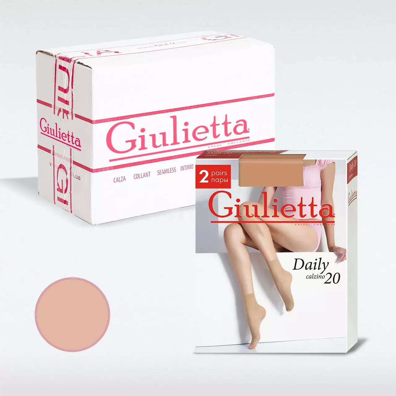 Шкарпетки Giulietta DAILY 20 calzino — це незамінний аксесуар у жіночому гардеробі, що вдосконалює будь-який образ і захищає ноги від натирання взуттям. Вони майже непомітні маючи щільність 20 den, забезпечують повний комфорт навіть у спекотну погоду завдяки легкій, тонкій текстурі, і можуть бути використані з відкритим взуттям. Щільно облягаючи стопу, шкарпетки повторюють її форму, не натирають шкіру та не викликають подразнень. Легкі та практично невагомі, вони забезпечують комфорт протягом усього дня. М'яка резинка надійно фіксується на щиколотці, не перетискаючи її і не залишаючи слідів. В коробці йде 2 пари. Склад шкарпеток Giulietta DAILY 20 calzino: 96% поліамід, 4% еластан.