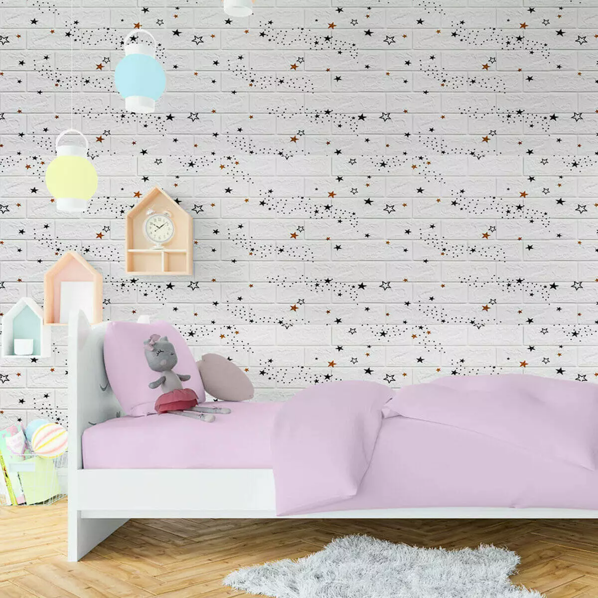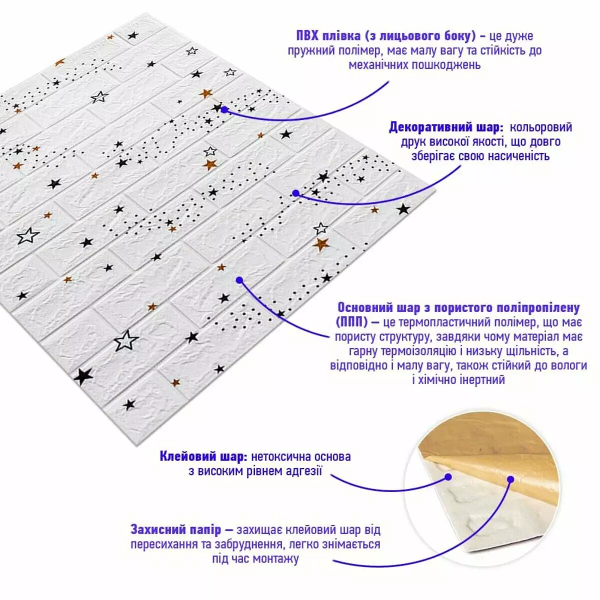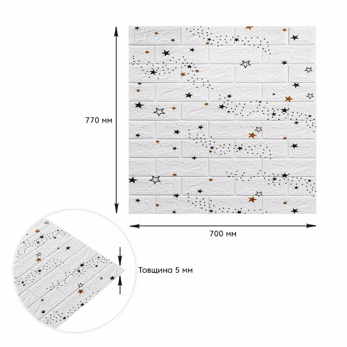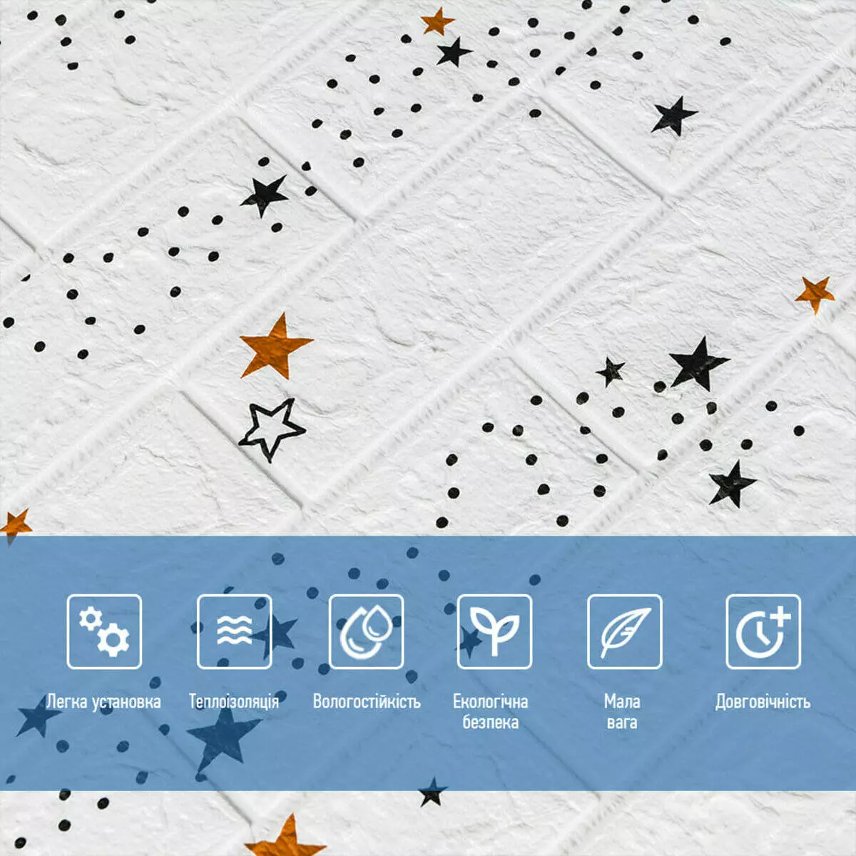Декоративна 3D панель самоклейка під білу цеглу Зірки