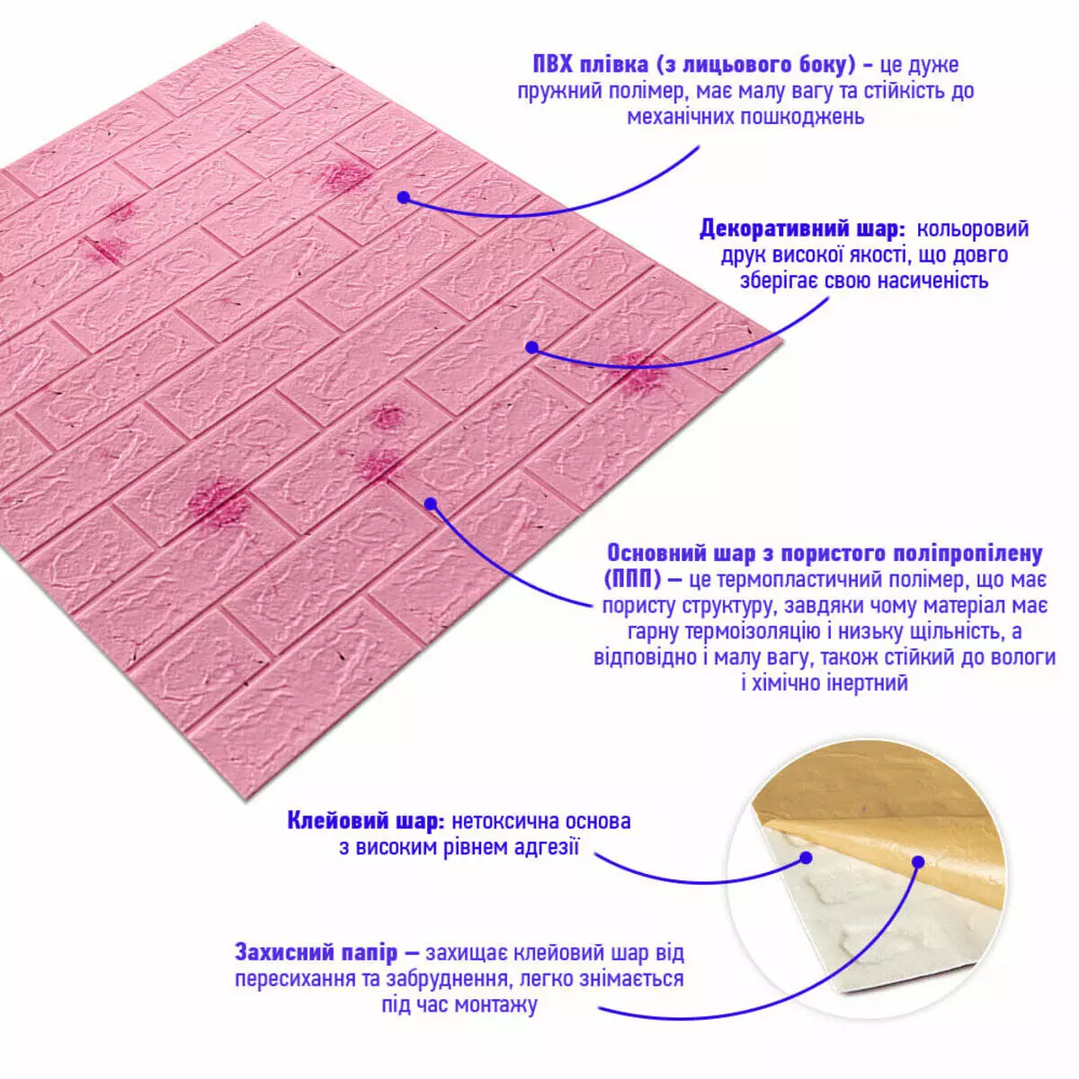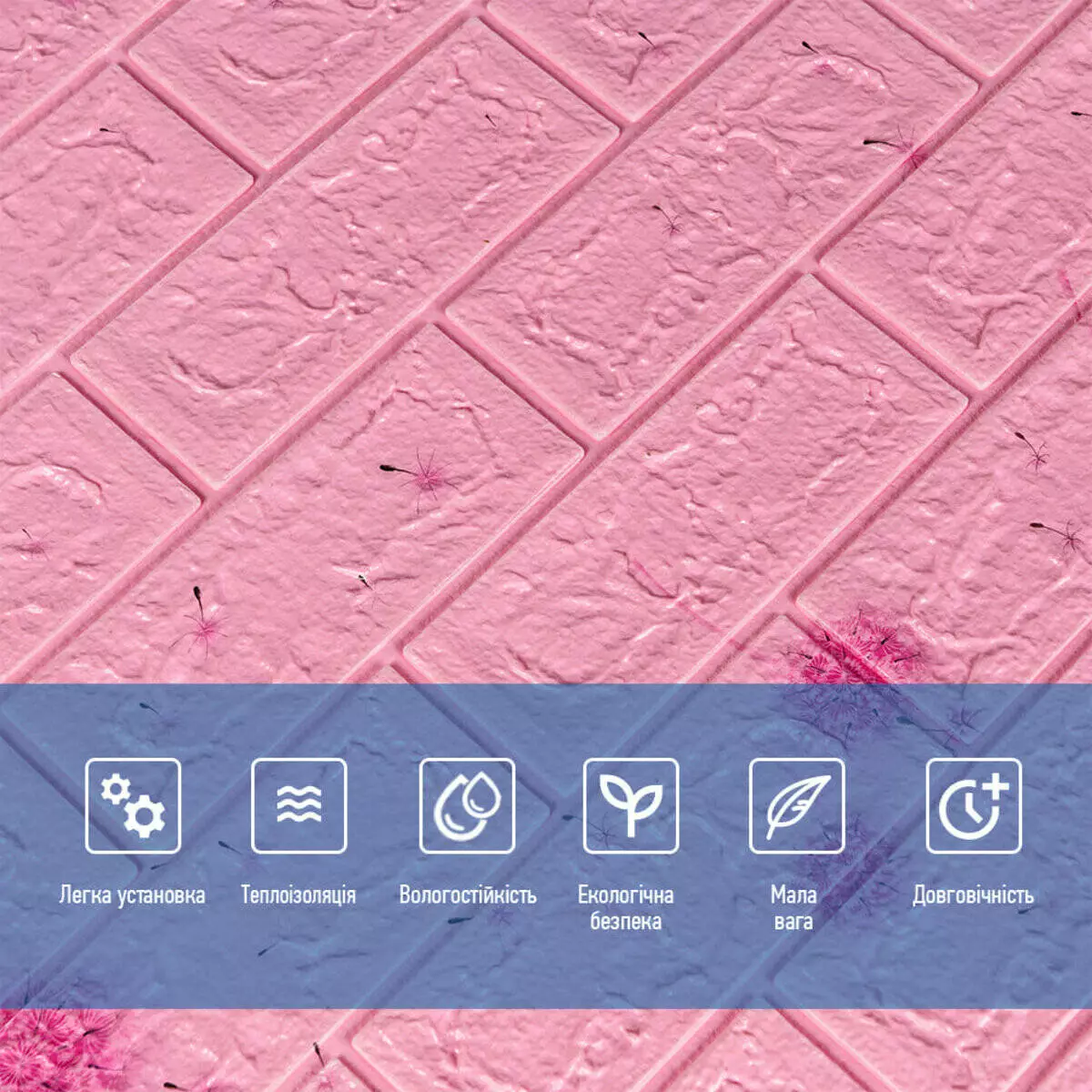 Декоративна 3D панель самоклейка під світло-рожевий