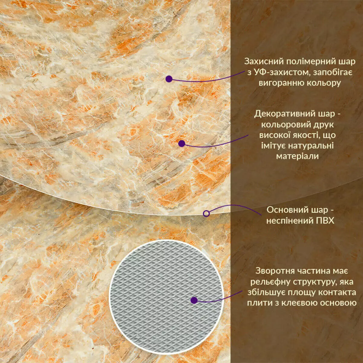 - Імітація натурального матеріалу (мармур, камінь)