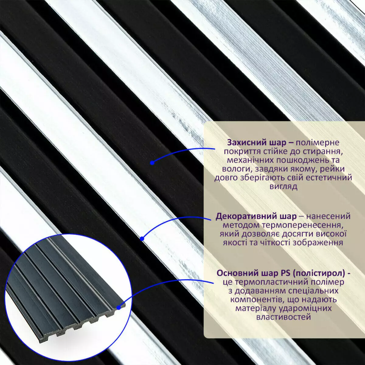 Рейка декоративна PS 2900х120х12мм Чорний зі сріблом SW-00002133