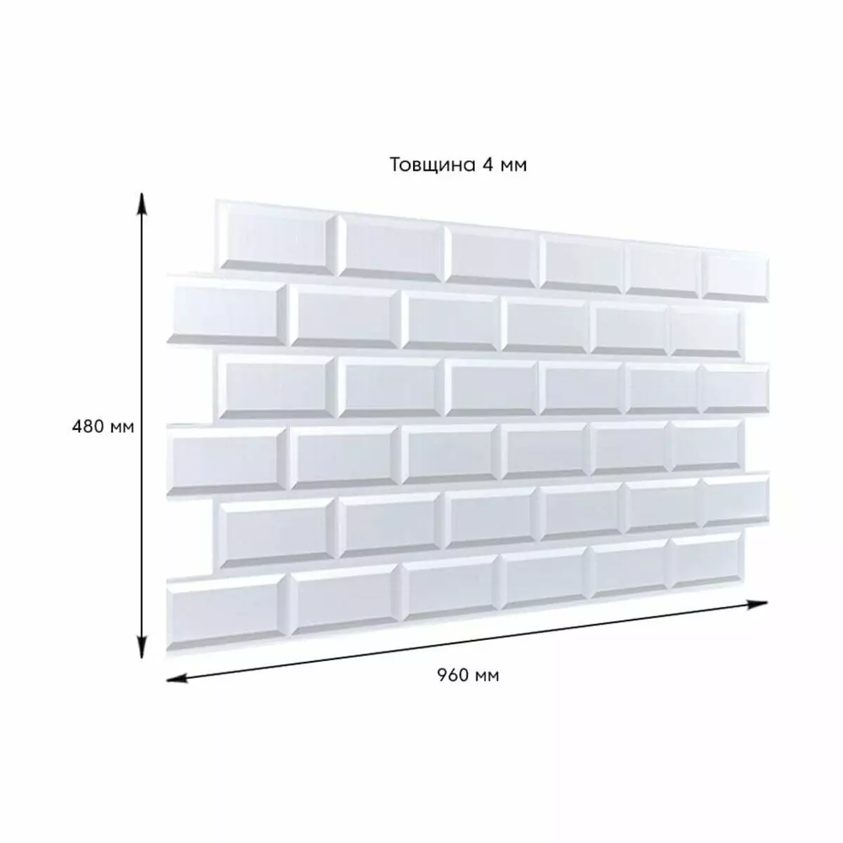 Розмір ПВХ панелі – 960ммх480мм. Товщина – 4 мм.
