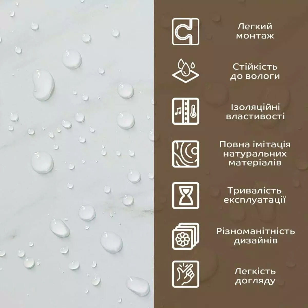 Декоративна ПВХ плита 1,22м х 2,44м х 3мм Білий мармур SW-00001399