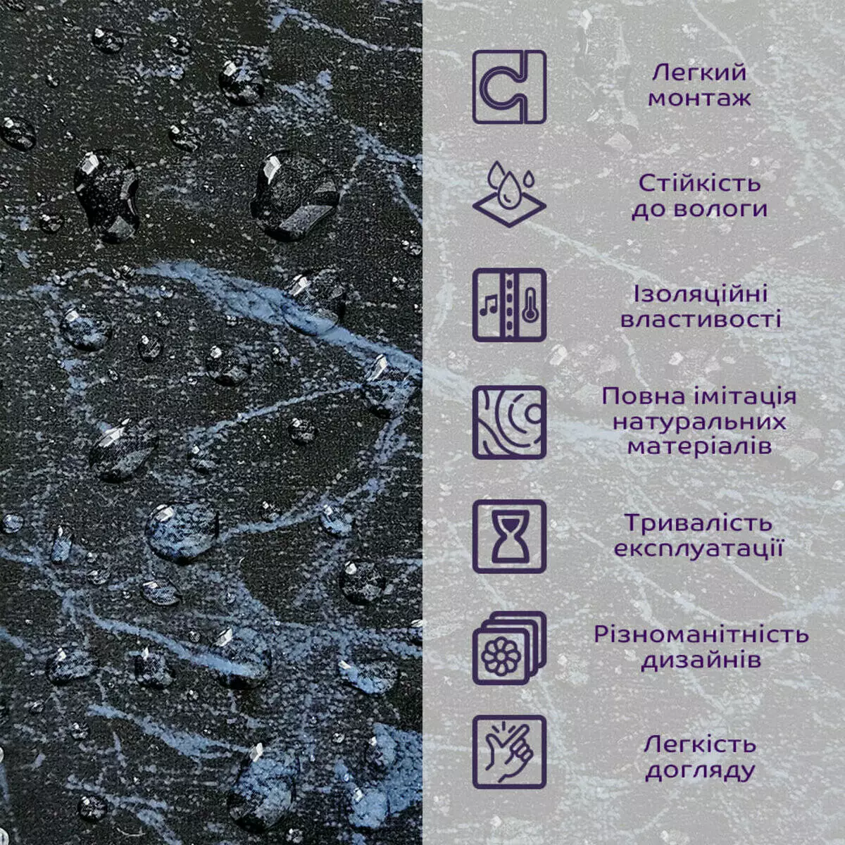 • Імітація натурального матеріалу (мармур, камінь)