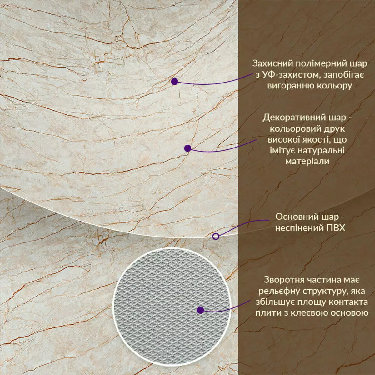 - Імітація натурального матеріалу (мармур, камінь)