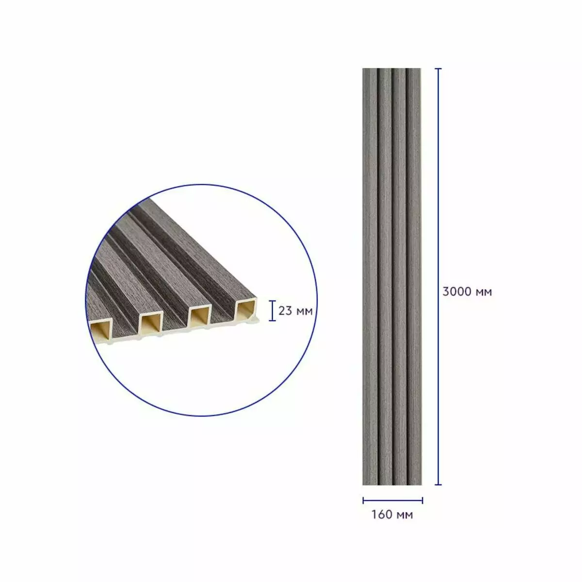 Рейка декоративна WPC стінова 3000х160х23мм Олов'яний SW-00001530
