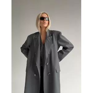 Демісезонне двобортне жіноче пальто BALENCIAGA з костюмної тканини на підкладці темно сірого кольору