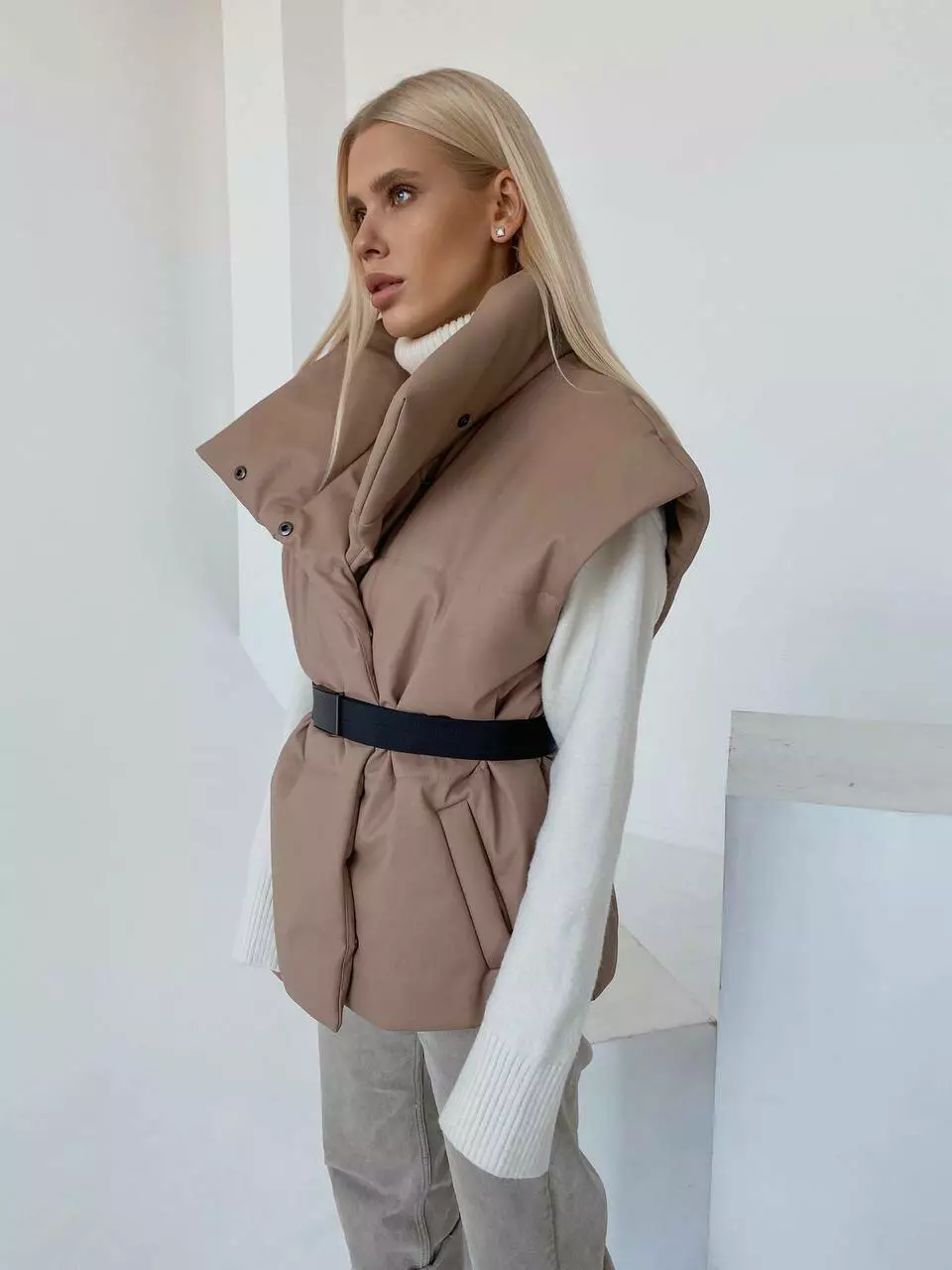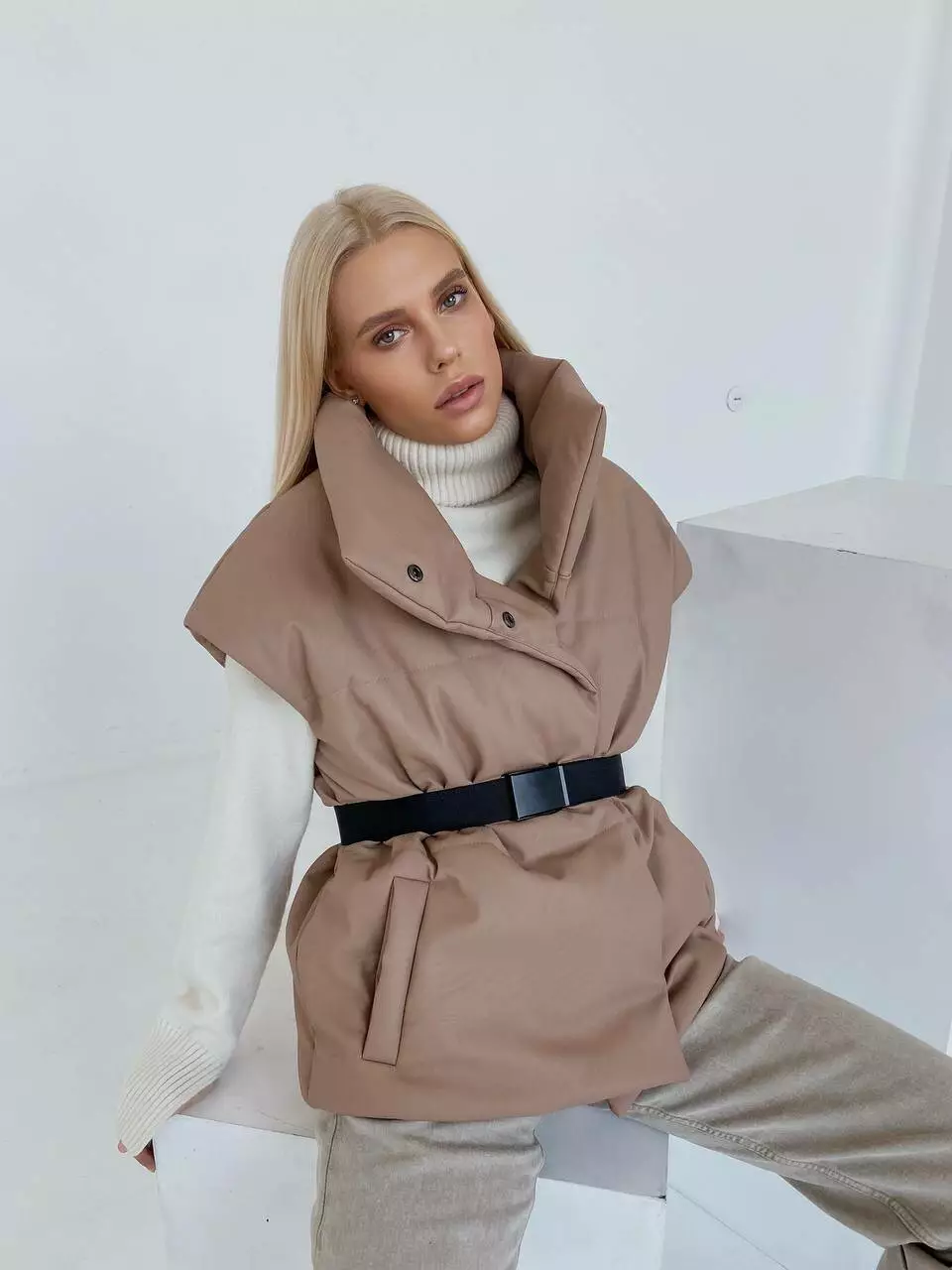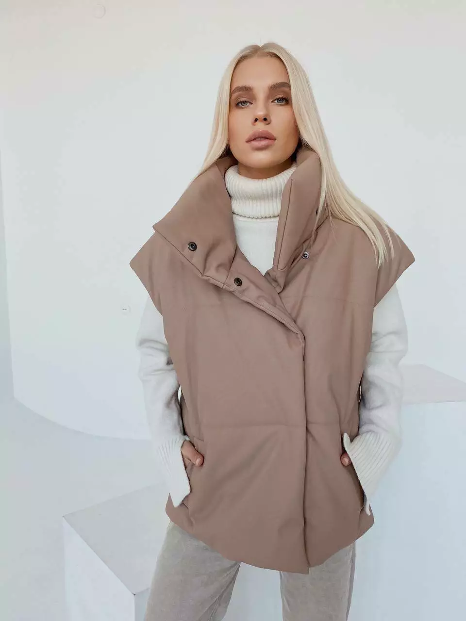 Демісезонний трендовий жилет Desing з екошкіри утеплювач силікон 200 бежевого кольору