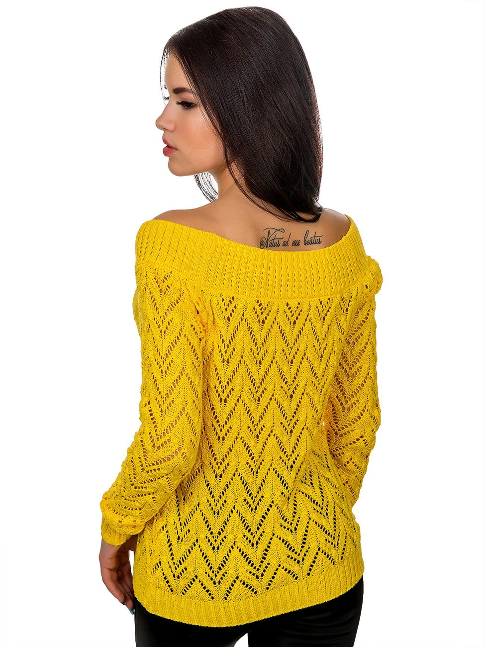 Джемпер прямого силуэта выполненный ажурной вязкой из