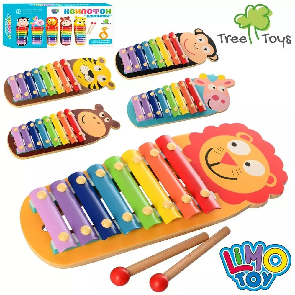 Фотография 1 товарной позиции интернет-магазина детских игрушек www.smarttoys.com.ua Дерев'яна іграшка Ксилофон MD 2377 тварина, 8 тонів, палички 2 шт., 5 видів, кор., 16-35-4 см.