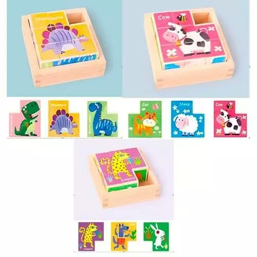 Фотография 1 товарной позиции интернет-магазина детских игрушек www.smarttoys.com.ua Дерев'яна іграшка Кубики MD 1857 пазли, 3 види (динозаври, домашні тварини, дикі тварини), кул.