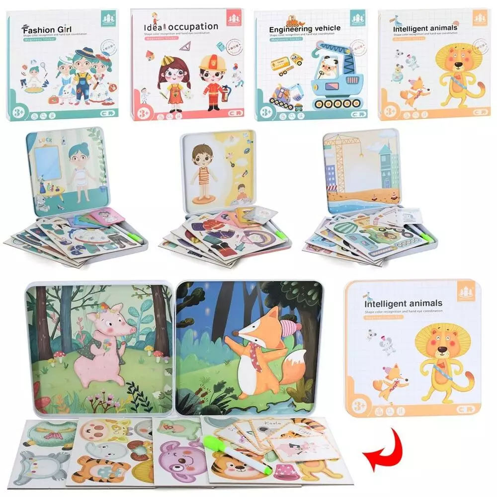 Фотография 1 товарной позиции интернет-магазина детских игрушек www.smarttoys.com.ua Дерев'яна іграшка Пазли MD 2926 2в1 (дощеч./малюв.), магнітна, 4 види, пенал, кул., 22,5-20,5-2 см.
