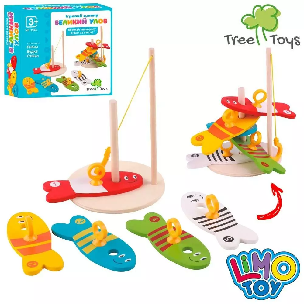 Дерев'яна іграшка Риболовля MD 1944 iгрове поле, рибки, вудочка, кор., 13,5-11,5-3,5 см.