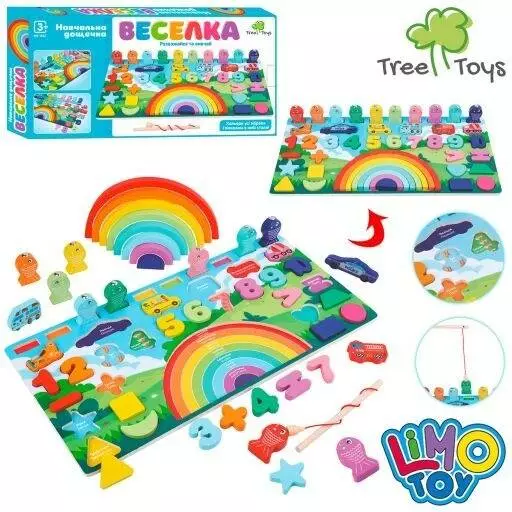 Фотография 1 товарной позиции интернет-магазина детских игрушек www.smarttoys.com.ua Дерев'яна іграшка Центр розвиваючий MD 1647 риболовля, цифри, слова укр./рос., кор., 45,5-23-4,5 см.