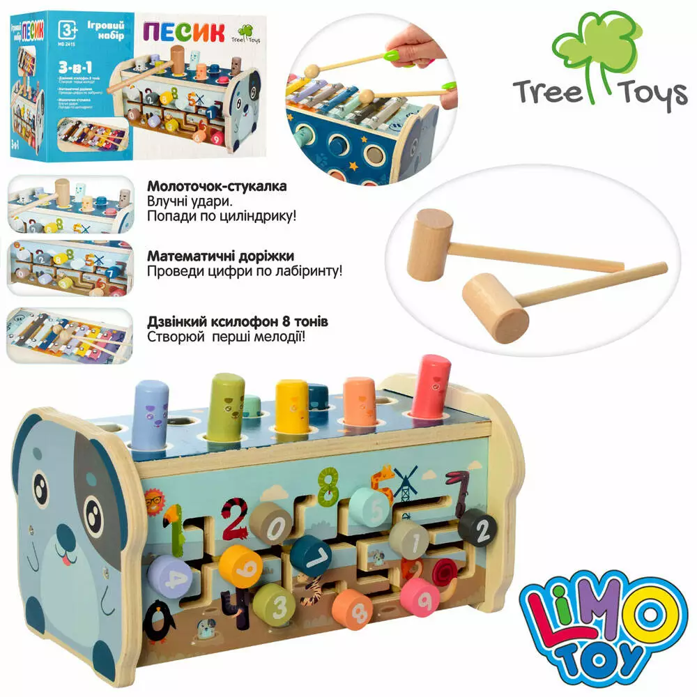 Фотография 1 товарной позиции интернет-магазина детских игрушек www.smarttoys.com.ua Дерев'яна іграшка Центр розвиваючий MD 2415 лабіринт, стукалка, ксилофон, кор., 25,5-15-15,5 см.