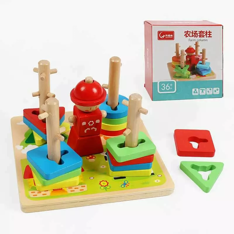 Дерев`яний геометричний сортер C 74859 (40) кілочки, фігурки, в коробці
