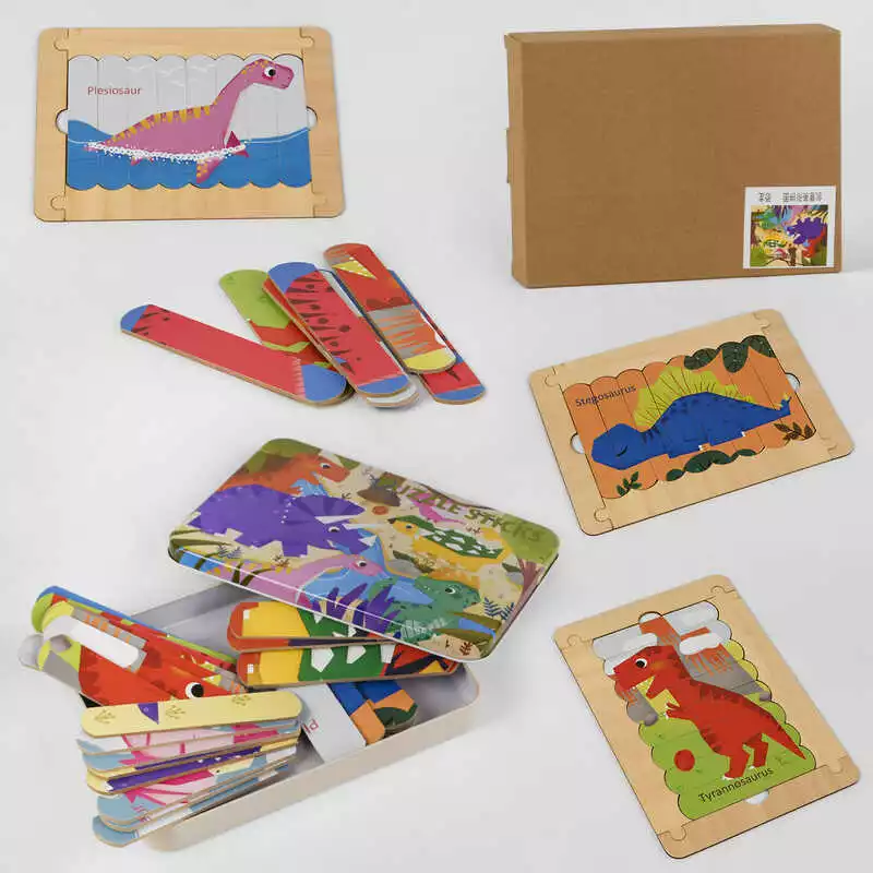 Пазли C 47010 (48) “Динозаври”, дерев`яні, 4 упаковки пазлів, рамка, в коробці