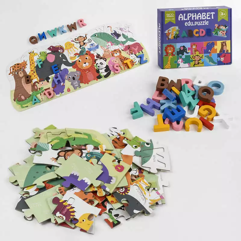Пазли C 47749 (36) 2 види, дерев`яні, англійські літери або цифри, в коробці
