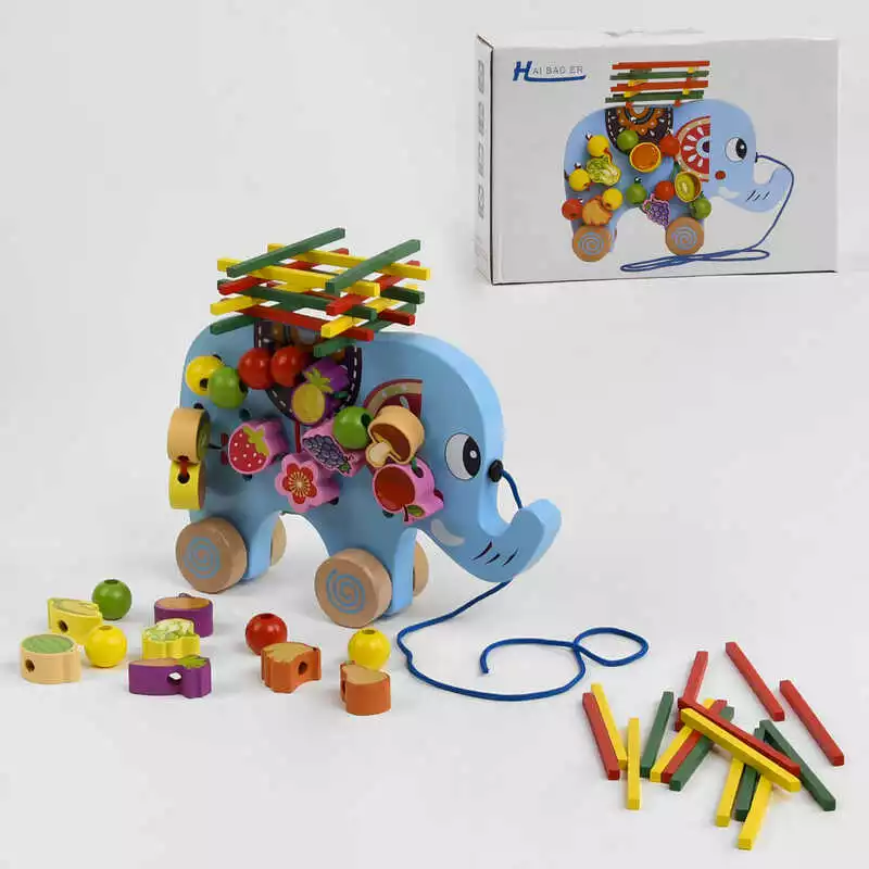 Ігровий центр C 48174 (36) "Слоненя", дерев’яний, каталка, шнурівка, брусочки, в коробці