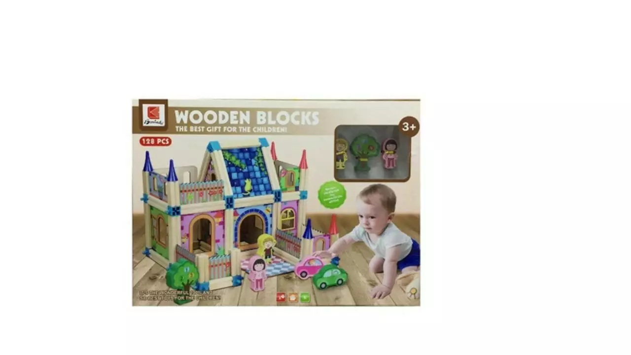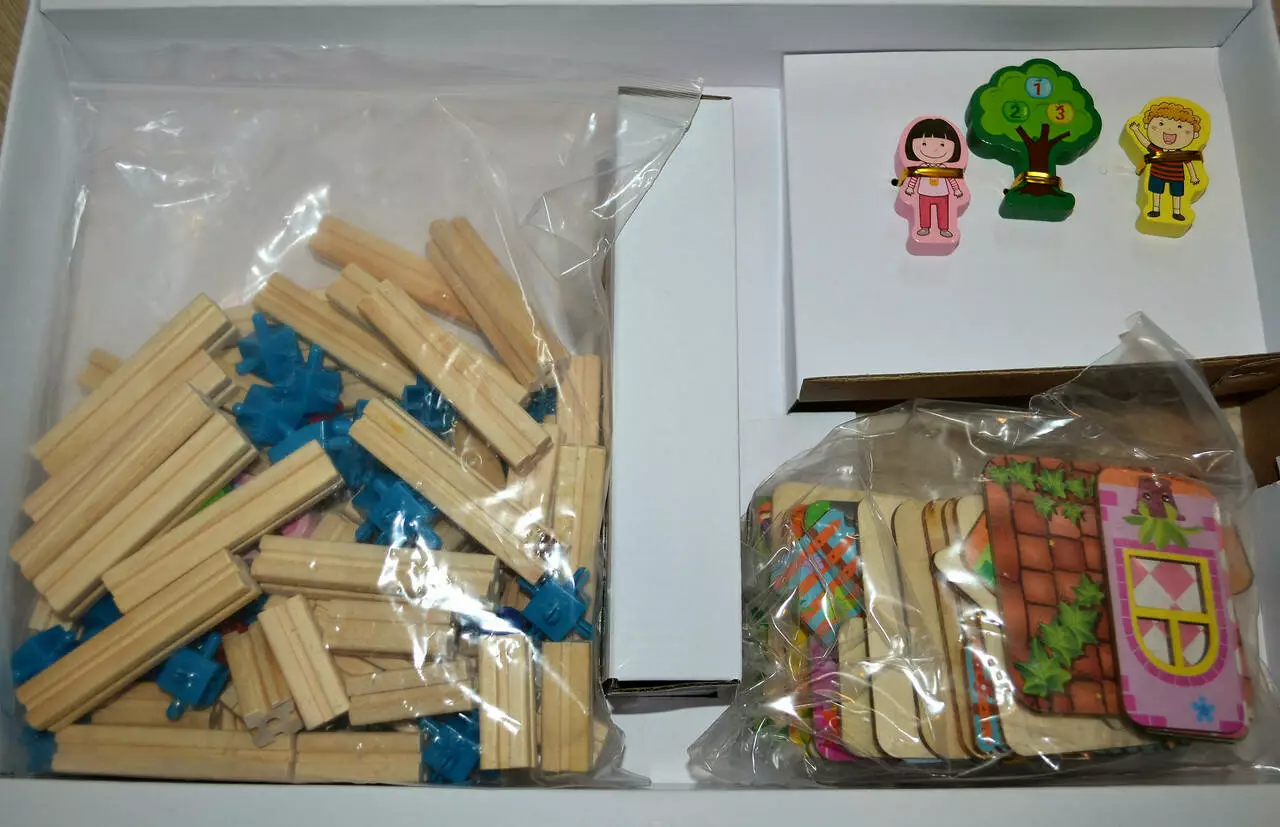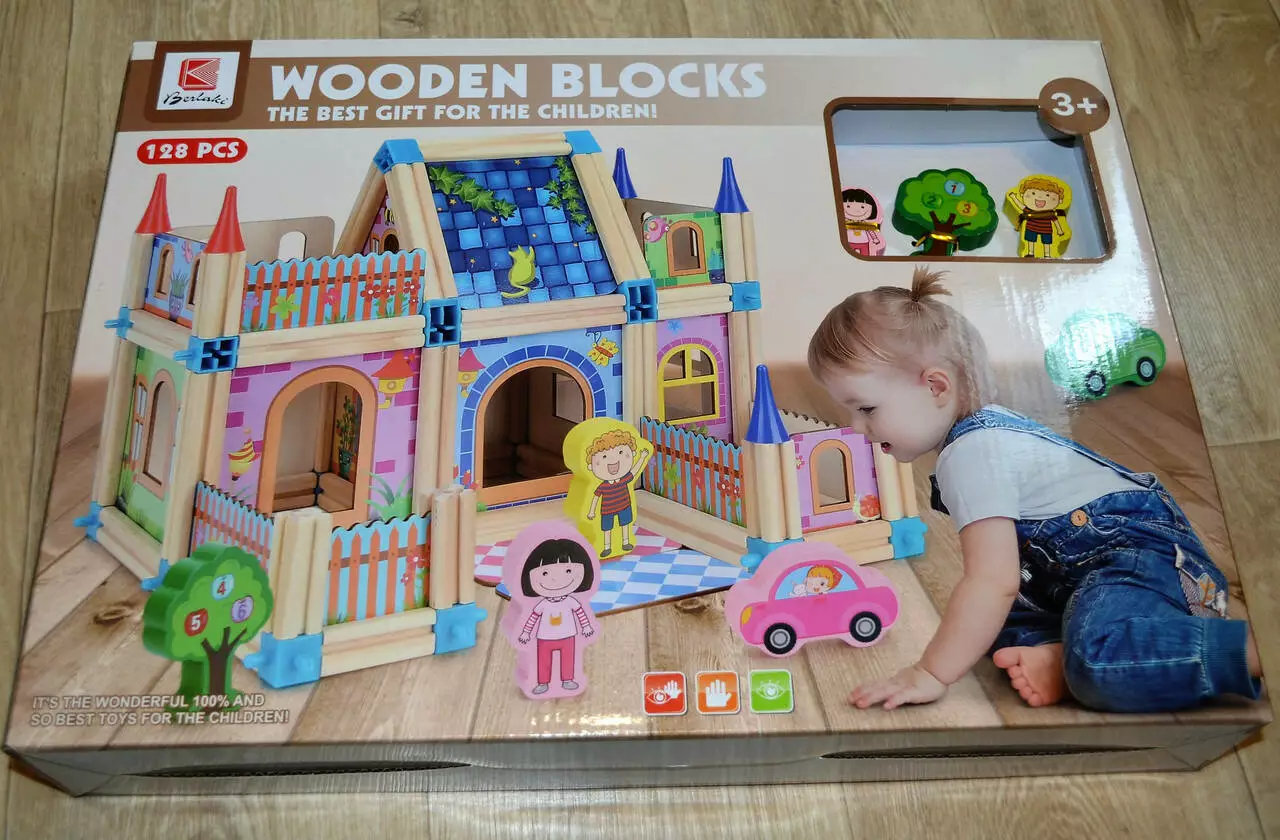 В наборе имеется 128 деревянных деталей, из которых нужно сложить